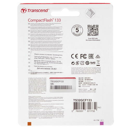 Увеличьте возможности своей техники с помощью карты памяти Compact Flash Transcend CF133 32 GB (TS32GCF133). Закажите ее прямо сейчас и ощутите все преимущества надежного и быстрого хранения данных! Не упустите возможность приобрести качественный продукт по выгодной цене.