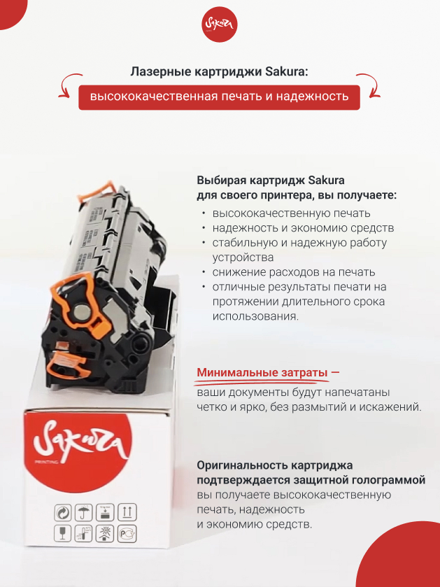 Выбирая картридж Sakura, вы получаете не только превосходное качество печати, но и выгодную цену. Это экономичное решение для дома и офиса, позволяющее значительно сократить расходы на печать без ущерба для качества.