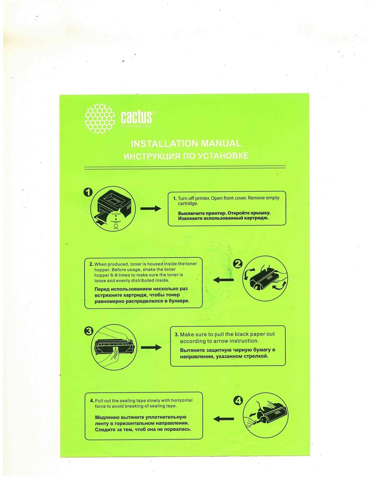 Установка картриджа Cactus CS-CE260X проста и не требует специальных навыков. Он легко устанавливается в принтер и готов к работе за считанные секунды. Вы сможете сразу же начать печатать, не тратя время на сложные настройки.