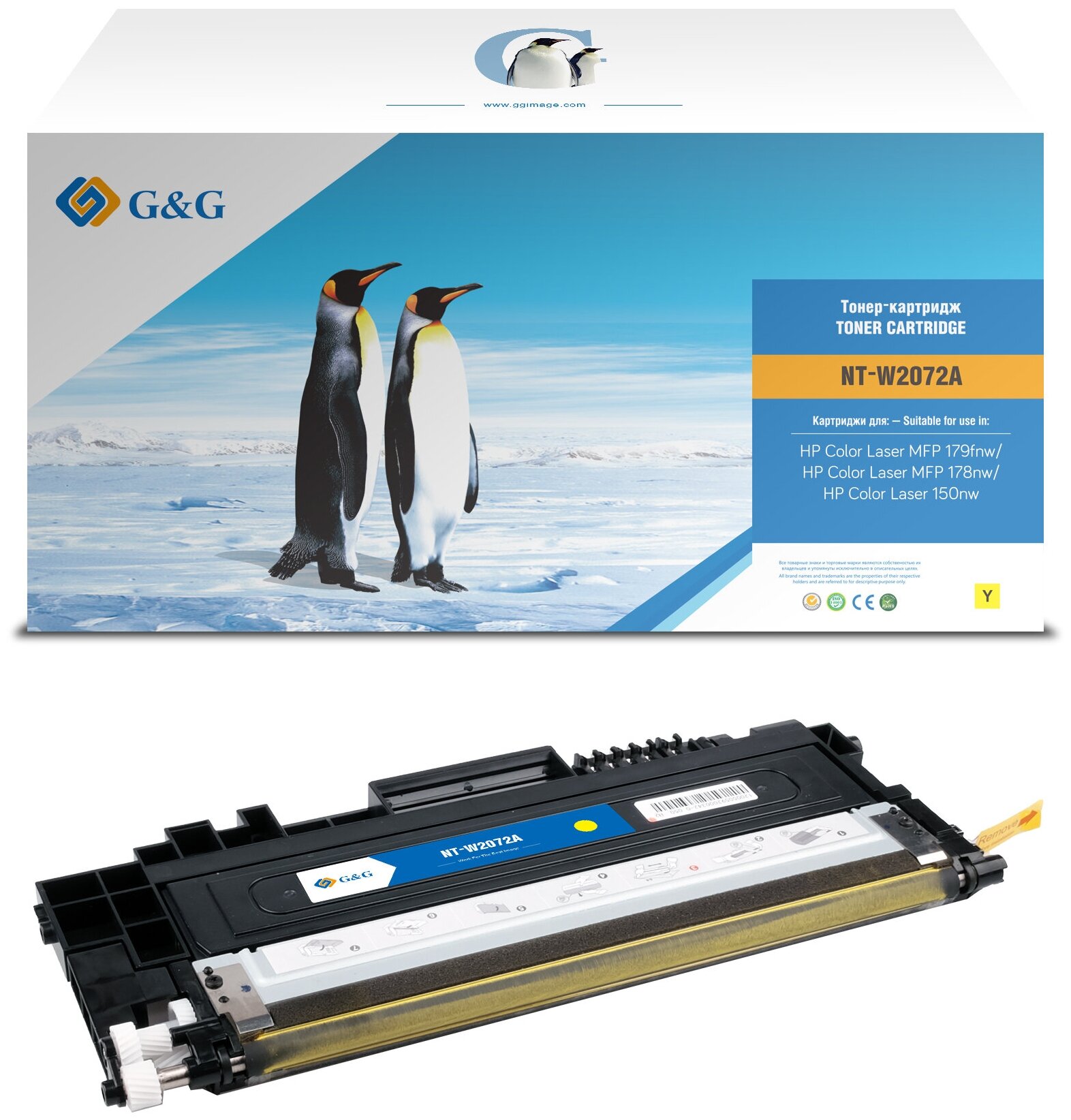 Картридж для для HP W2072A жёлтый, G&G совместимый совместимый