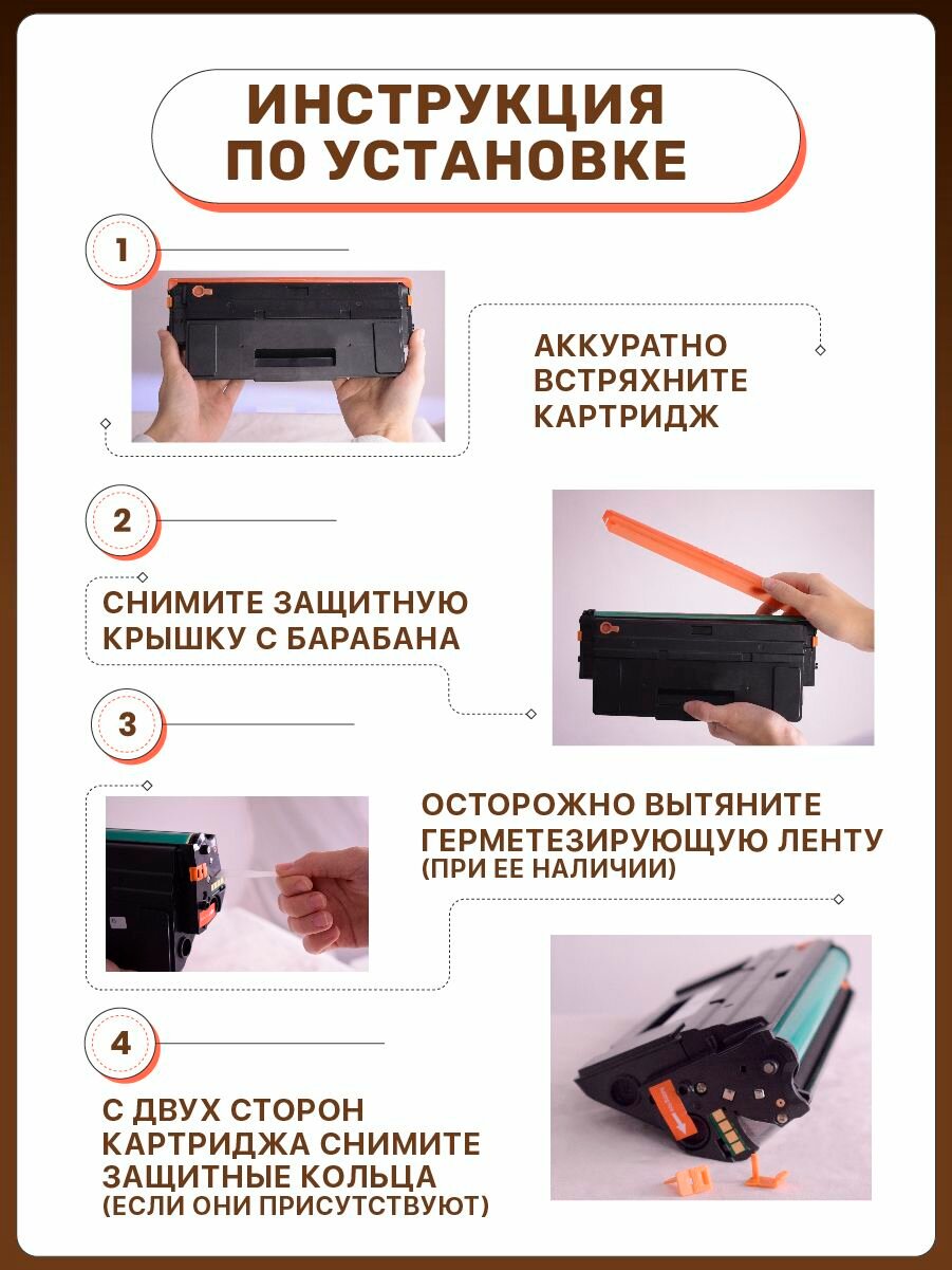 В комплекте 4 ШТ! Совместимые перезаправляемые тонер-картриджи PC211EV с многоразовым чипом подходят для лазерных принтеров PANTUM / Пантум : • P2200 • P2207 • P2500 • P2507 • P2500W • P2500NW • P2506W • P2510 • P2516 • P2518 • M6500 • M6550 • M6600 • M6607 • M6500W • M6506NW • M6507 • M6507W • M6557NW • M6550NW • M6600N • M6600NW • M6600W • M6602NW • M6607NW Ресурс - 1600 страниц формата А4 при 5%(!) заполнении страницы. Внимание! В случае наличия оранжевых транспортировочных фиксаторов, защитных крышек, шторок и чеки/запорной ленты их нужно извлекать. Т. к, в лазерном картридже PC 211 чип многоразовый с безлимитным автосбросом, используя его, можно заправлять картридж принтера несколько раз, пока устраивает качество печати. Если принтер показывает замену картриджа, достаточно открыть и закрыть крышку доступа к картриджу, или выключить и включить аппарат - чип сбрасывается. Все картриджи PC211 имеют пробку заправочного отверстия (черного, белого или оранжевого цвета). Данная пробка предназначена для повторной заправки картриджа и находится на торцевой части картриджа со стороны чипа. При производстве расходных материалов GalaPrint используются только качественные комплектующие. Картриджи GalaPrint полностью совместимы с заявленными моделями принтеров, обеспечивают естественную цветопередачу и хорошее качество печати. Важно: Производитель имеет право, не уведомляя заказчика, вносить изменения в конструкцию и комплектацию картриджа, без ухудшения его потребительских свойств. Рекомендуем заправлять картриджи в специализированных сервисных центрах!