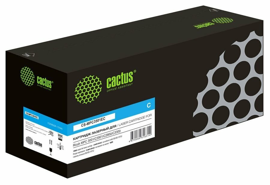 Картридж лазерный Cactus CS-MPC3501EC 841427 голубой (16000стр.) для Ricoh MPС 3001/C3501/C2800/C3300