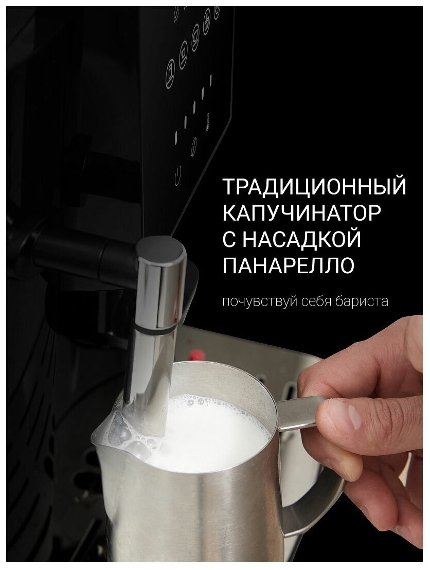 Эта кофемашина сочетает в себе элегантный дизайн и передовые технологии, чтобы каждое утро начиналось с бодрящего и насыщенного напитка. Просто нажмите кнопку, и машина приготовит для вас ароматный эспрессо, кремовый капучино или нежный латте, словно из рук профессионального бариста.