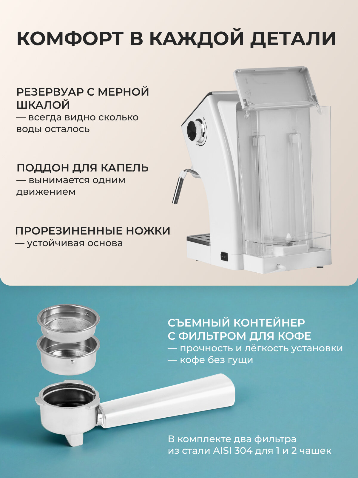 Встроенный капучинатор позволит вам создавать пышную и воздушную молочную пену для латте и капучино, прямо как в любимой кофейне. Просто налейте молоко, включите капучинатор и наслаждайтесь восхитительным напитком, приготовленным с любовью.
