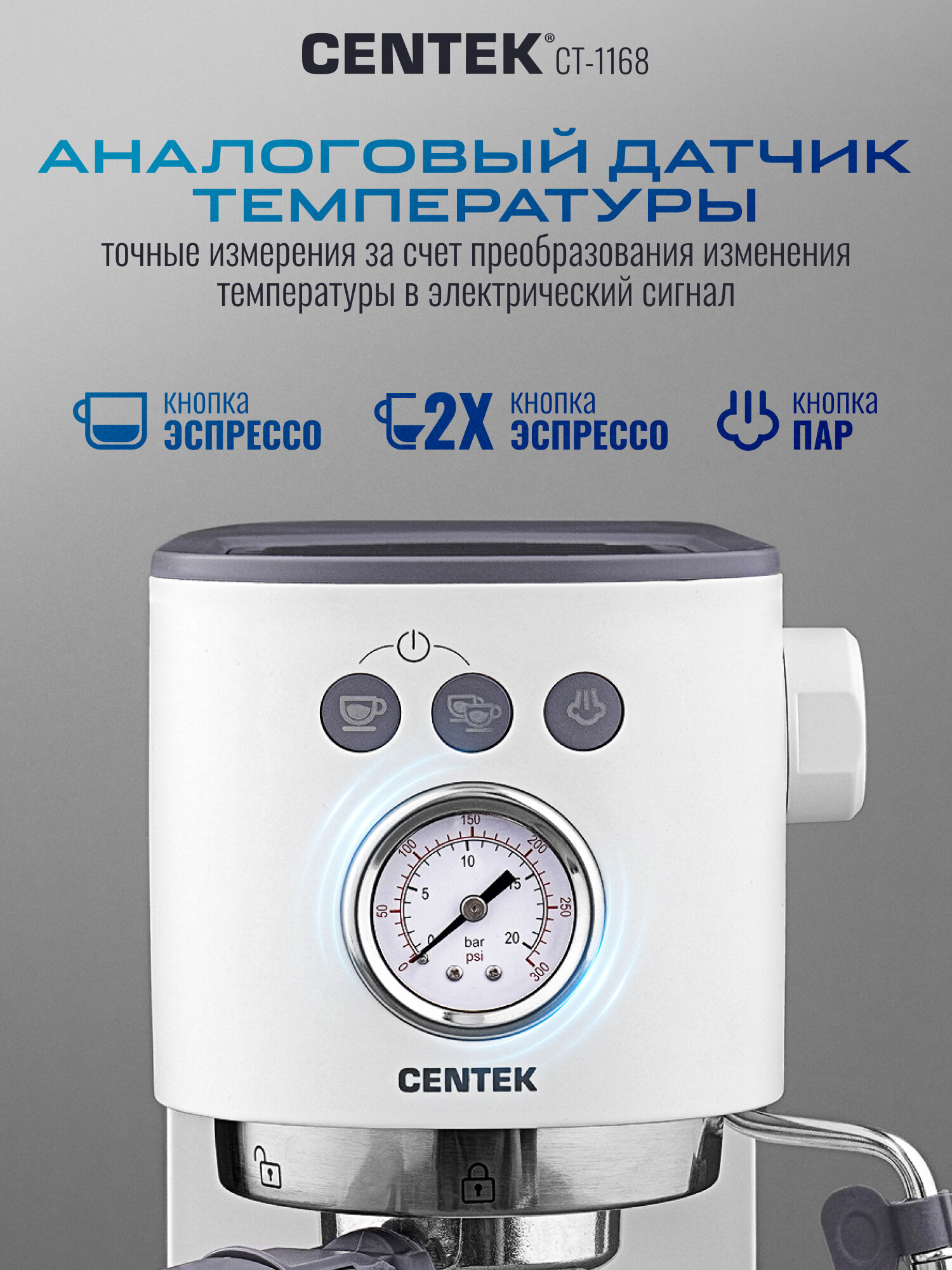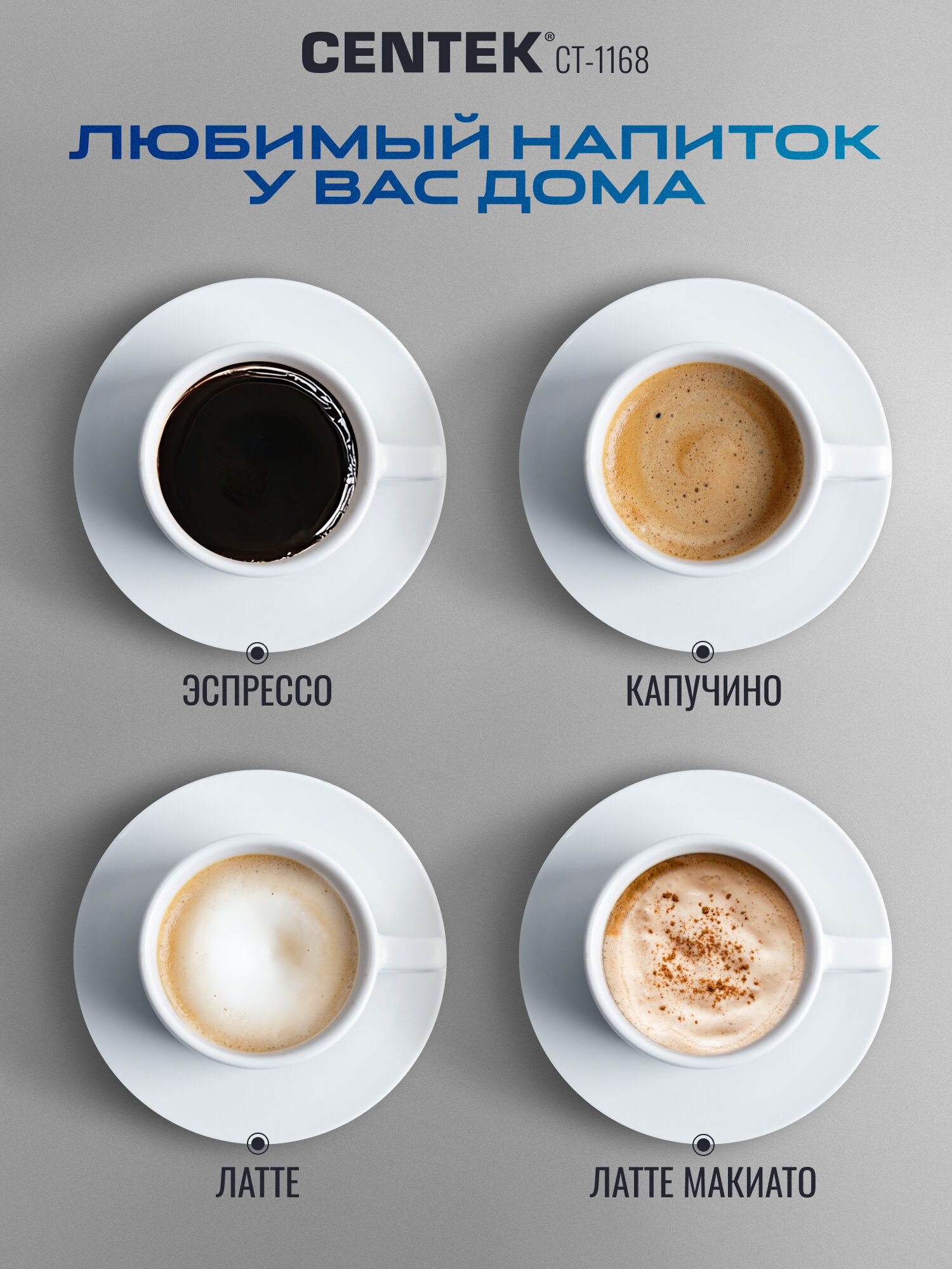 Забудьте о долгих походах в кофейню! С Centek CT-1168 вы сможете приготовить восхитительный эспрессо, капучино или латте у себя дома, не тратя время и деньги. Почувствуйте себя настоящим бариста и радуйте себя и своих близких вкусным и ароматным кофе каждый день.