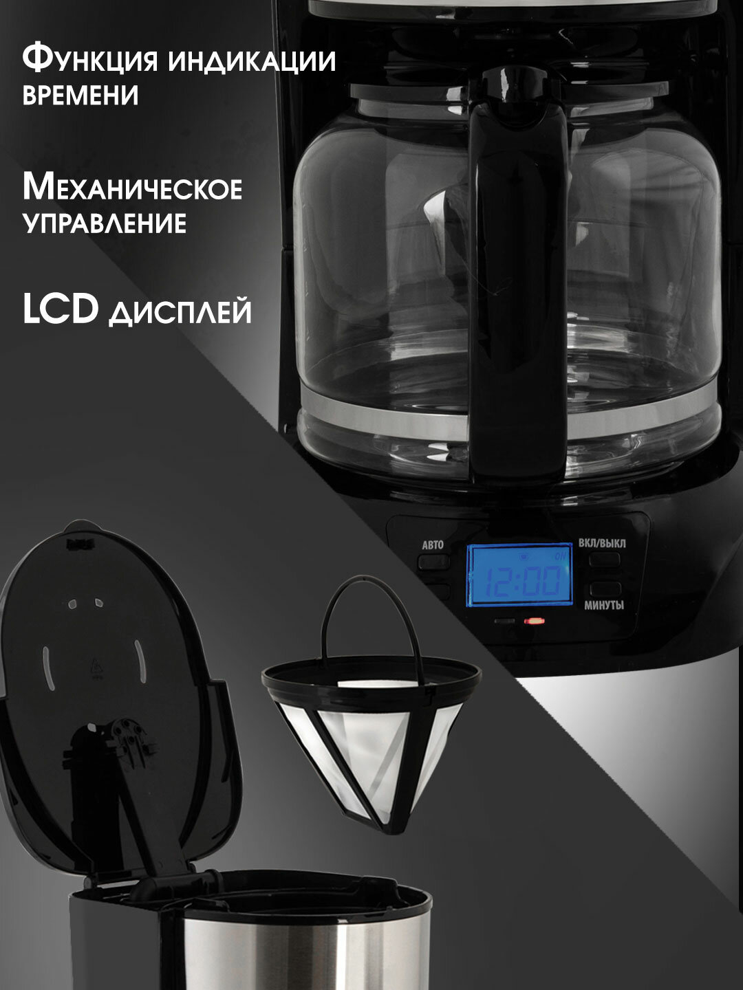Эта кофеварка – ваш надежный помощник в создании кофейных ритуалов. Благодаря удобному таймеру отложенного старта, вы сможете запрограммировать приготовление кофе на любое время, вплоть до 24 часов. Представьте, как приятно просыпаться под восхитительный аромат свежесваренного кофе, который уже ждет вас на кухне!