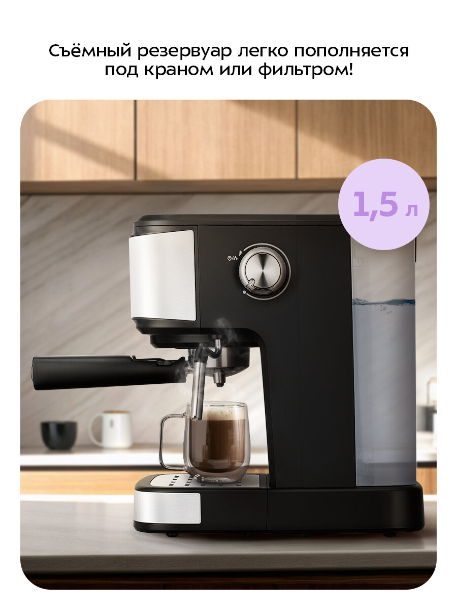 Эта кофеварка создана для того, чтобы упростить вашу жизнь и подарить вам возможность наслаждаться настоящим вкусом кофе. Легкость в уходе и очистке – еще одно преимущество, которое вы оцените по достоинству. Больше времени на наслаждение и меньше на уборку!