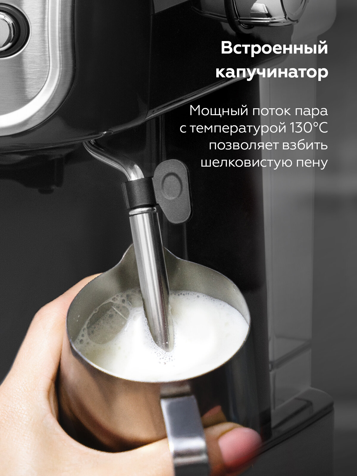 Кофеварка оснащена мощным насосом, который обеспечивает оптимальное давление для извлечения насыщенного вкуса и аромата из молотого кофе. Интуитивно понятное управление позволяет легко настроить параметры приготовления, а встроенный капучинатор позволит вам вспенить молоко для идеального капучино или латте.