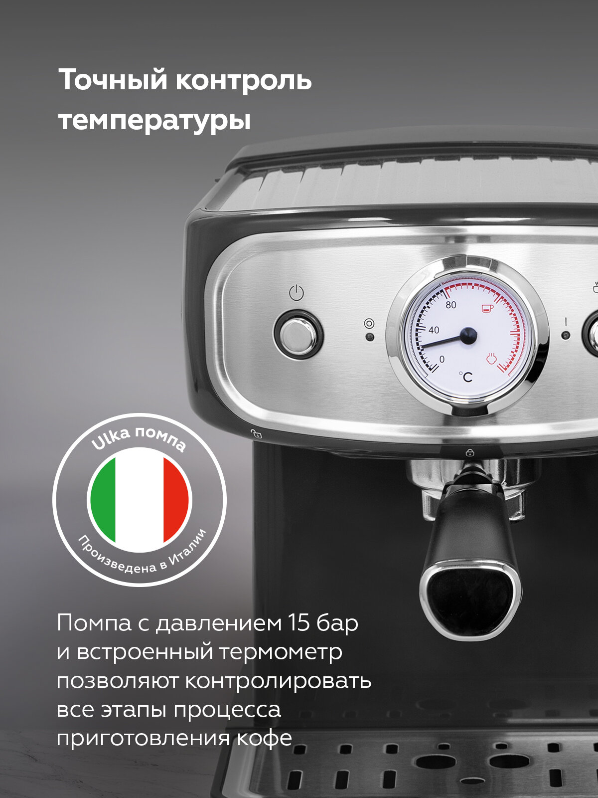 Насладитесь идеальной чашкой кофе, не выходя из дома, с этой рожковой кофеваркой! Этот стильный и функциональный прибор станет вашим верным помощником в создании бодрящего эспрессо или нежного капучино.