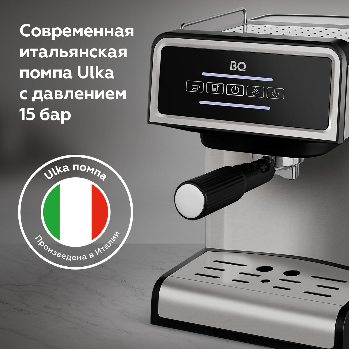 Забудьте о долгих походах в кофейню. С нашей кофеваркой вы сможете легко приготовить любимый напиток всего за несколько минут. Просто засыпьте молотый кофе, утрамбуйте его в рожке, и нажмите кнопку. Мощный насос создаст оптимальное давление, чтобы извлечь из кофе максимум вкуса и аромата.