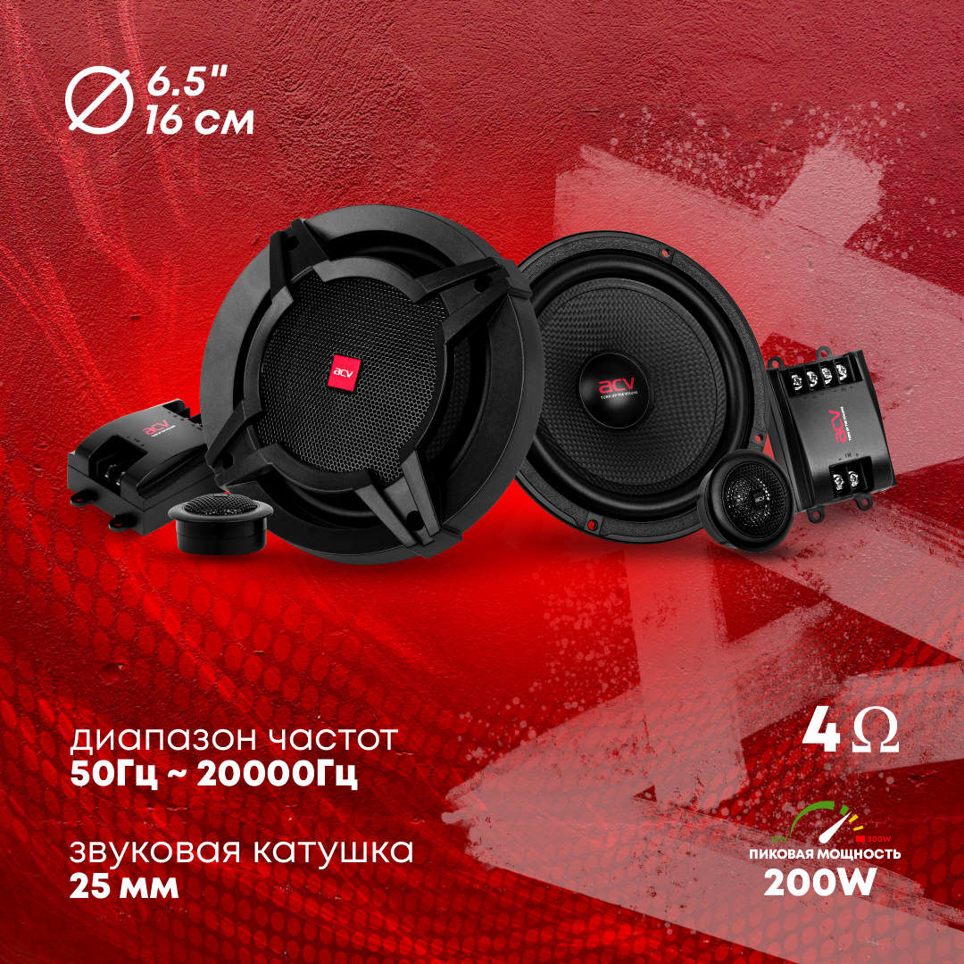 Улучшите звучание вашей автомобильной аудиосистемы с помощью компонентной акустики ACV PG-62S. Этот комплект, состоящий из двух динамиков, обеспечит чистое и мощное звучание, которое преобразит ваши поездки.
