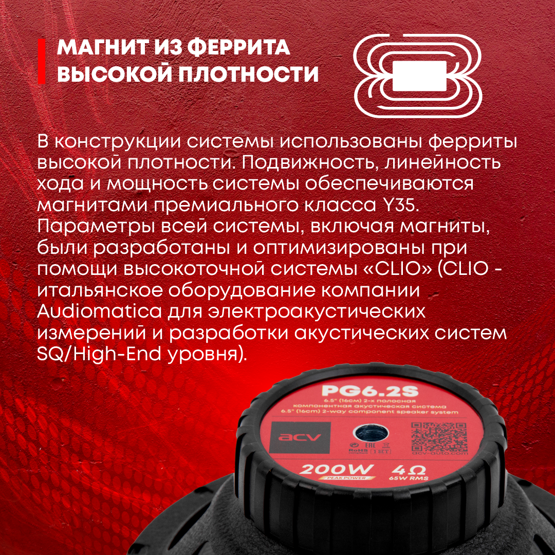 ACV PG-62S идеально подходит для тех, кто ценит качественный звук в автомобиле. Компонентная конструкция позволяет добиться оптимального разделения частот и создать объемную звуковую сцену.