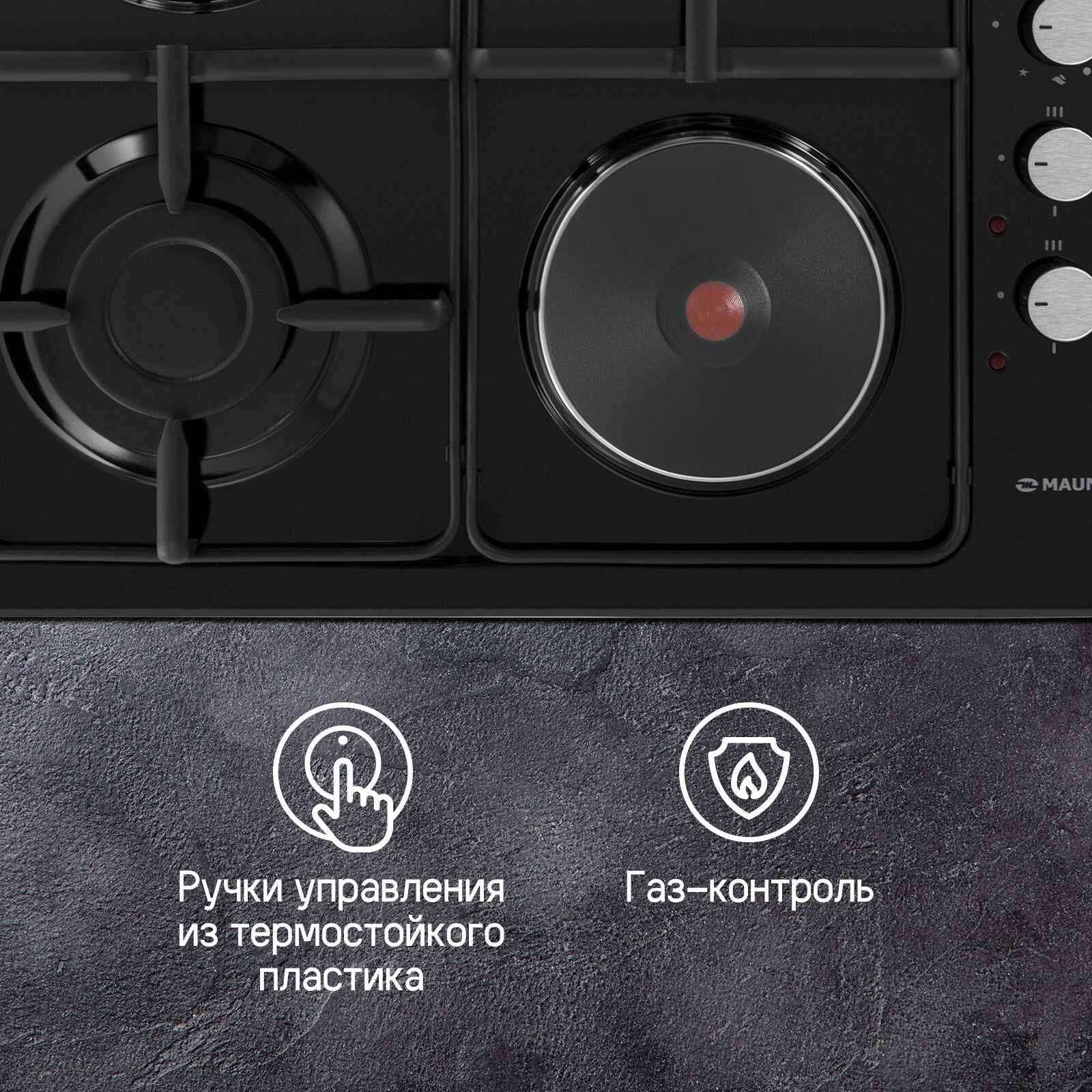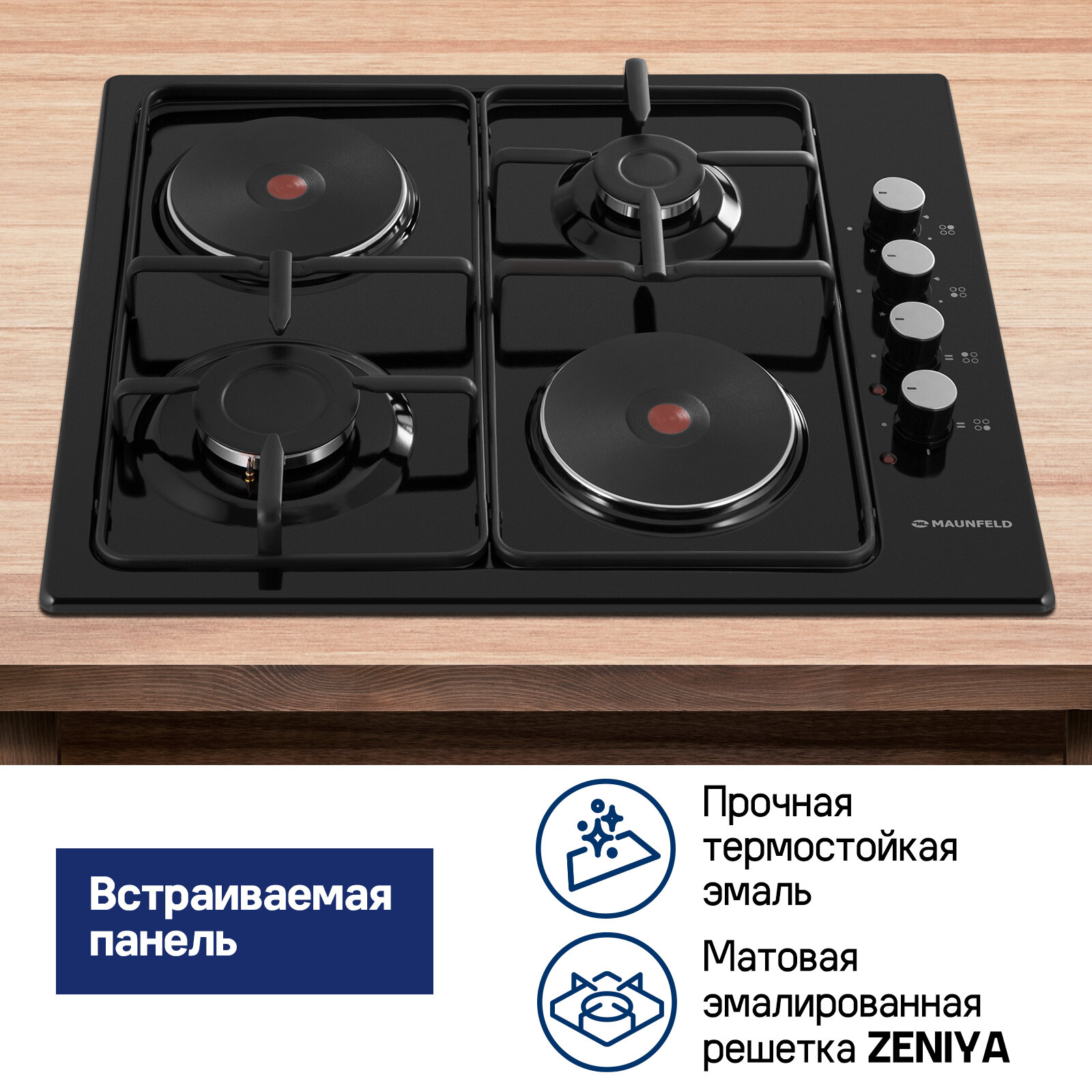 Ищете идеальное решение для кухни, сочетающее в себе преимущества газовой и электрической варочной поверхности? Комбинированная варочная панель Maunfeld EEHE645EBKG – это именно то, что вам нужно! Эта встраиваемая панель шириной 59 см предлагает оптимальное сочетание двух газовых и двух электрических конфорок, предоставляя вам максимальную гибкость в выборе способа приготовления.