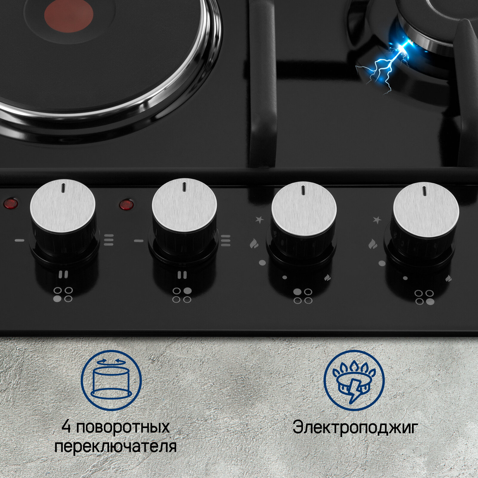Благодаря комбинированному типу конфорок, вы сможете быстро адаптироваться к любым кулинарным задачам. Используйте газовые конфорки для быстрого нагрева и жарки, а электрические – для тушения и поддержания тепла. Эта универсальная панель станет незаменимым помощником на вашей кухне.