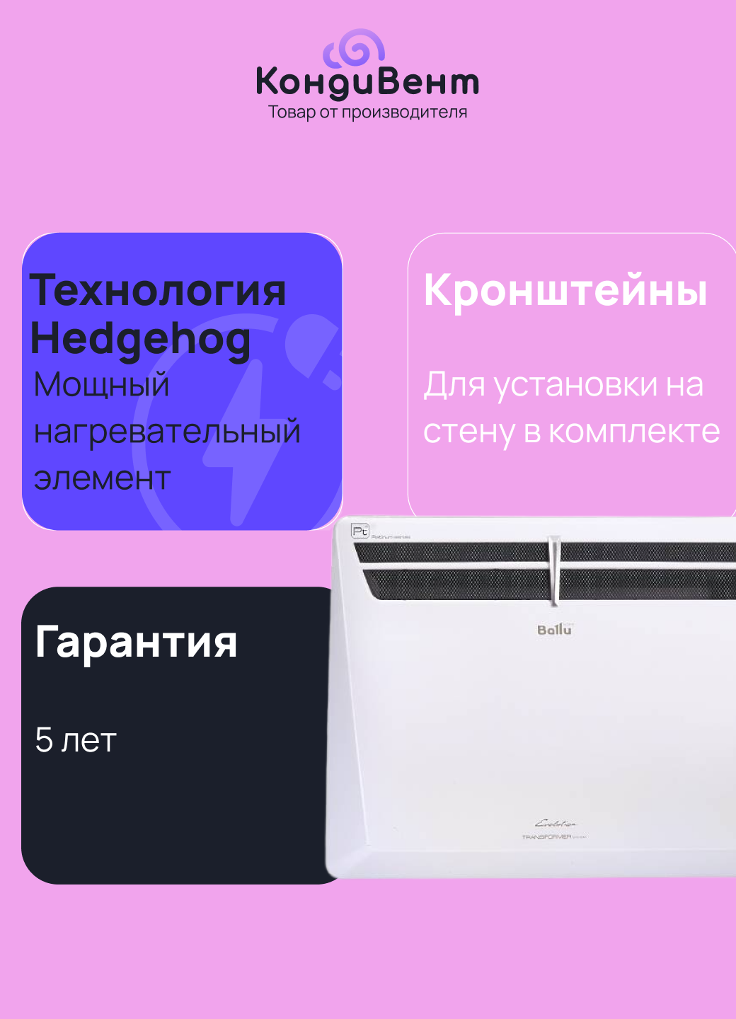 Не упустите возможность обеспечить себе и своим близким комфортное тепло в холодное время года! Закажите комплект Ballu Evolution Transformer прямо сейчас!