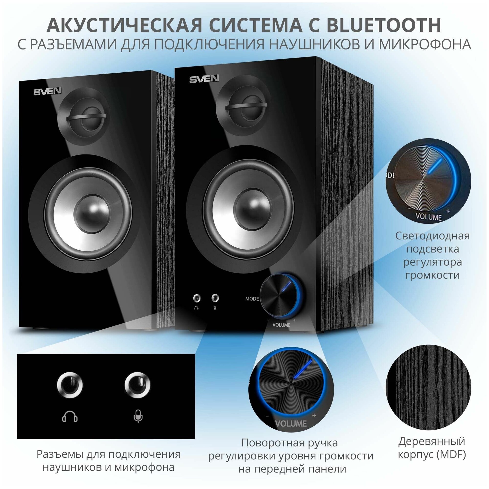 SVEN SPS-621 предлагает не только превосходное звучание, но и удобство использования. Благодаря встроенной технологии Bluetooth вы сможете легко подключить свои устройства без лишних проводов. Просто соедините акустическую систему с вашим смартфоном, планшетом или ноутбуком и наслаждайтесь беспроводной свободой.