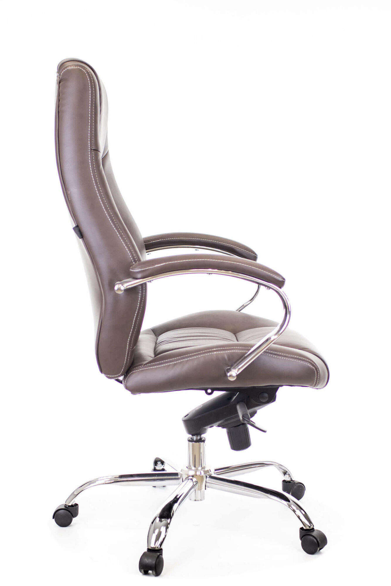 Изысканный коричневый цвет экокожи придает креслу благородный вид и легко вписывается в любой офисный интерьер. Эргономичная конструкция обеспечивает поддержку спины и поясницы, снижая усталость даже при длительном пребывании в сидячем положении.