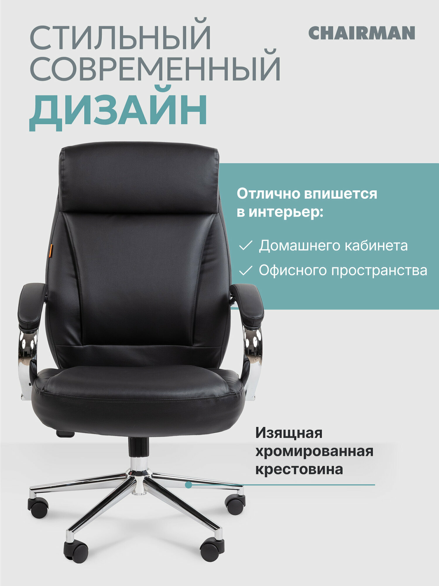 Компьютерное кресло руководителя CHAIRMAN 794, экокожа, черный, на хромированной крестовине