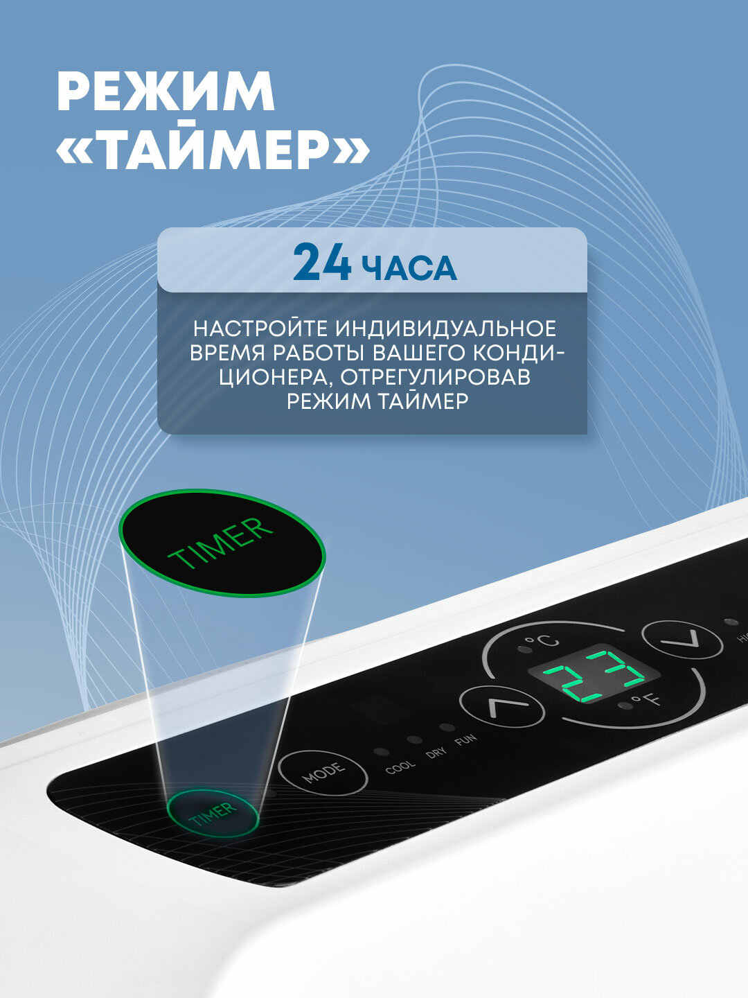 Удобное управление позволяет легко настраивать параметры работы кондиционера. Вы сможете выбрать оптимальную температуру и скорость вентилятора, создавая идеальные условия для отдыха или работы. А встроенная функция Wi-Fi позволяет управлять кондиционером удаленно, используя смартфон или планшет.