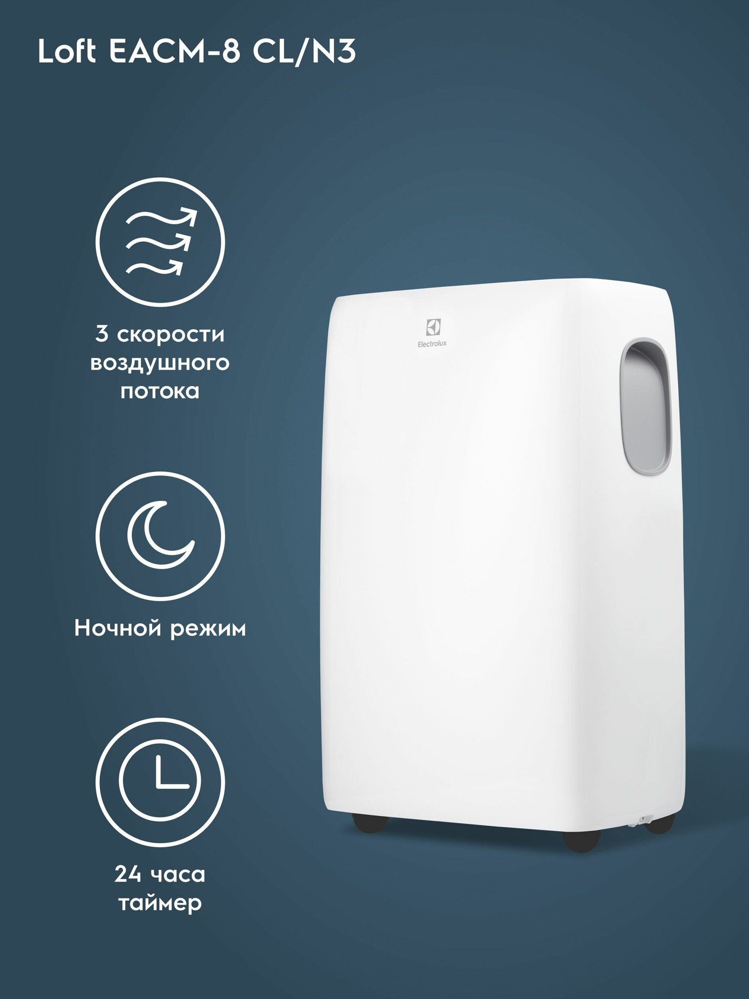 Electrolux Loft EACM-8 CLN3 не только охлаждает воздух, но и эффективно удаляет избыточную влагу, создавая более здоровую и комфортную атмосферу в вашем доме. Это особенно важно для людей, страдающих аллергией или астмой.