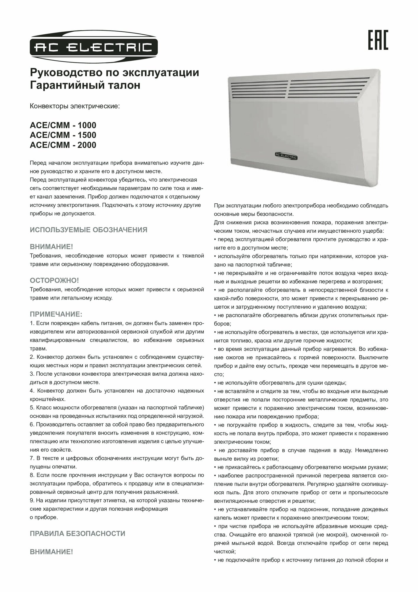 Конвектор AC Electric ACECMM-1000 – это безопасный выбор для вашей семьи. Он оснащен защитой от перегрева, что гарантирует его надежную работу и предотвращает возникновение аварийных ситуаций. Удобная панель управления позволяет легко регулировать температуру и выбирать оптимальный режим работы.