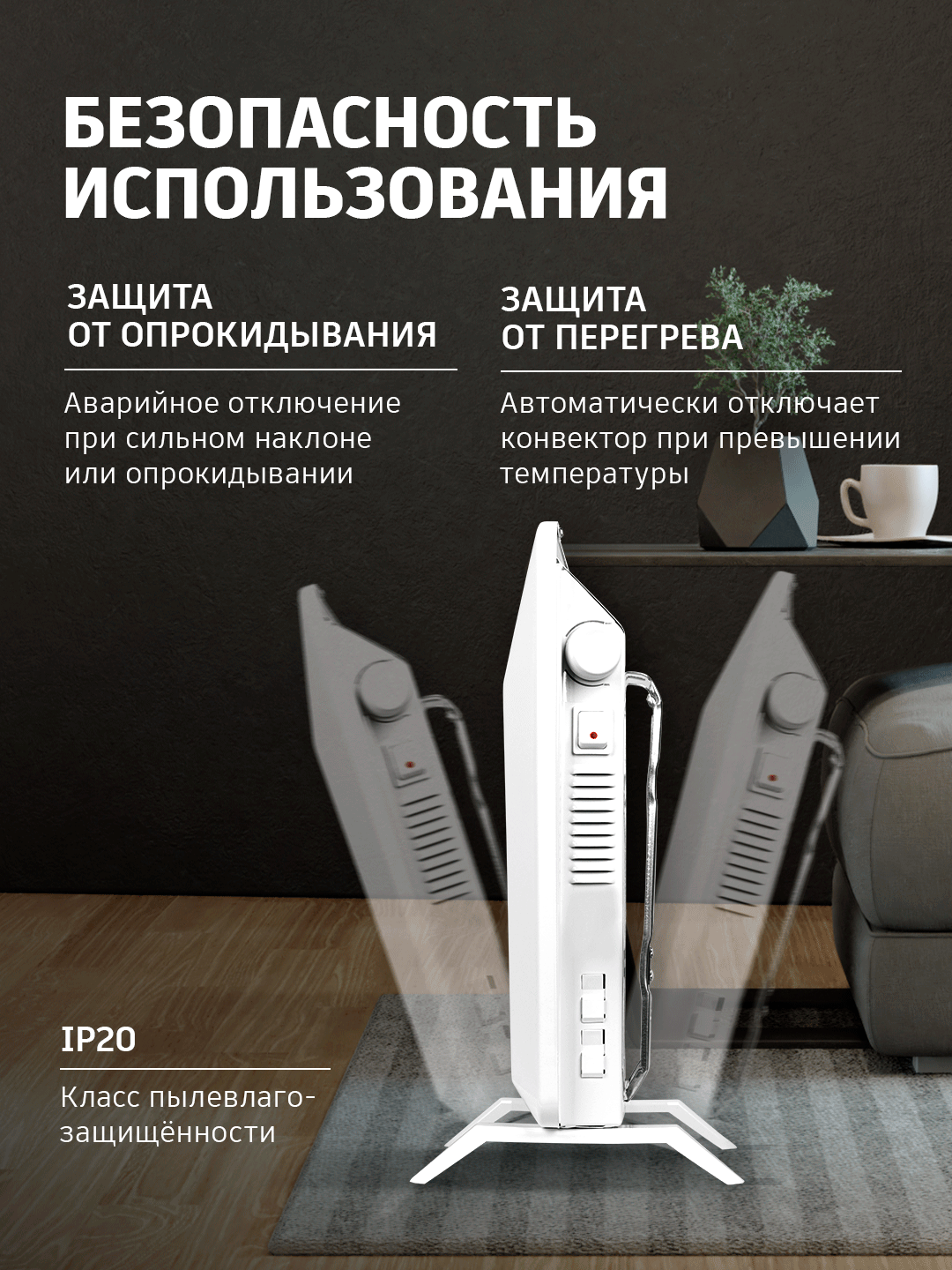 Этот конвектор станет незаменимым помощником в период межсезонья, когда центральное отопление еще не включено или уже выключено. Он также идеально подойдет для обогрева дачи или загородного дома.