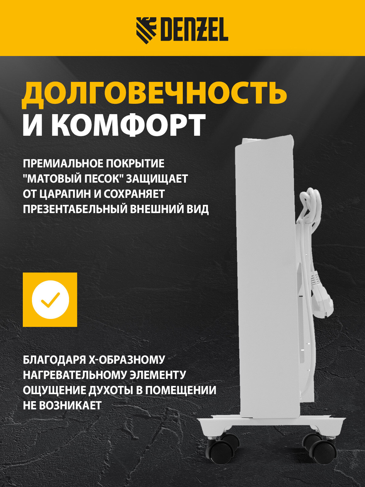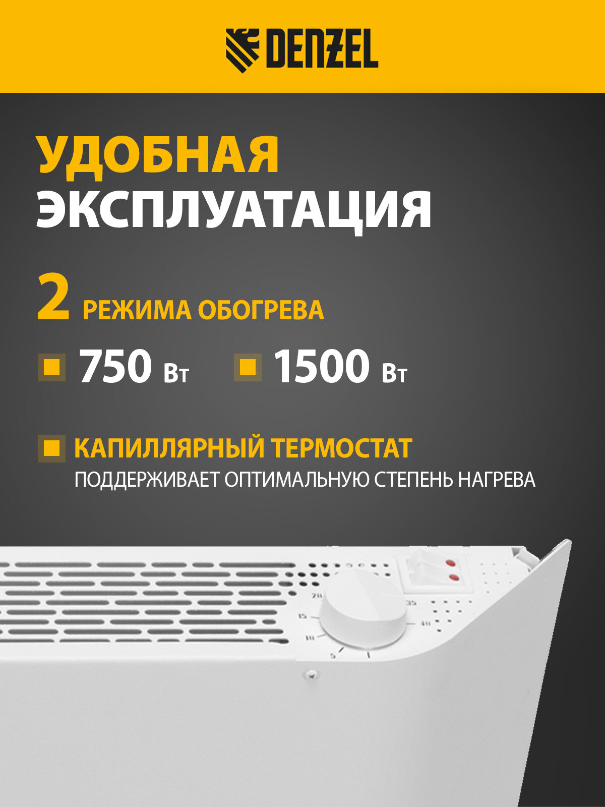 Приобретайте Denzel XCE-1500 прямо сейчас и почувствуйте разницу! Позвольте себе наслаждаться теплом и уютом в вашем доме. Инвестируйте в свой комфорт с надежным конвектором от Denzel.