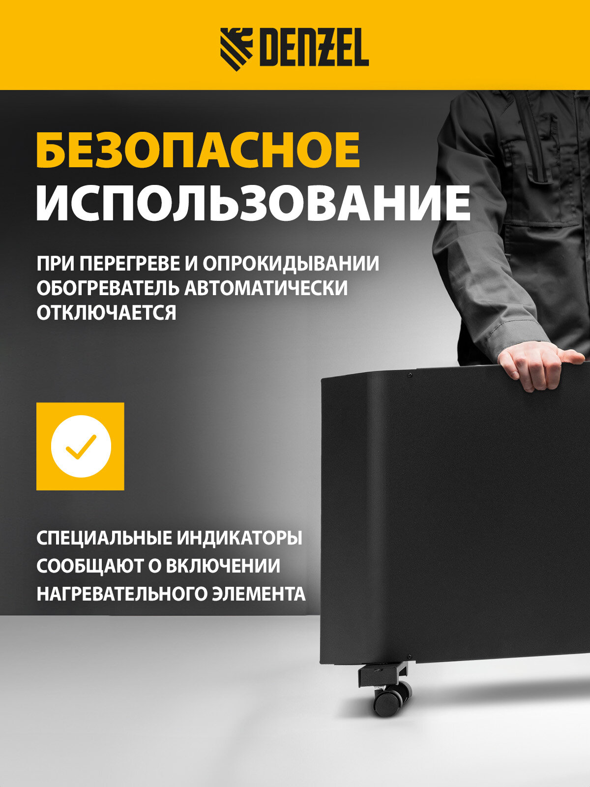 Denzel XCE-1500B – это не только эффективный, но и безопасный обогреватель. Он оснащен системой защиты от перегрева, что обеспечивает его безопасную эксплуатацию. Компактный и стильный дизайн позволяет легко вписать его в любой интерьер.
