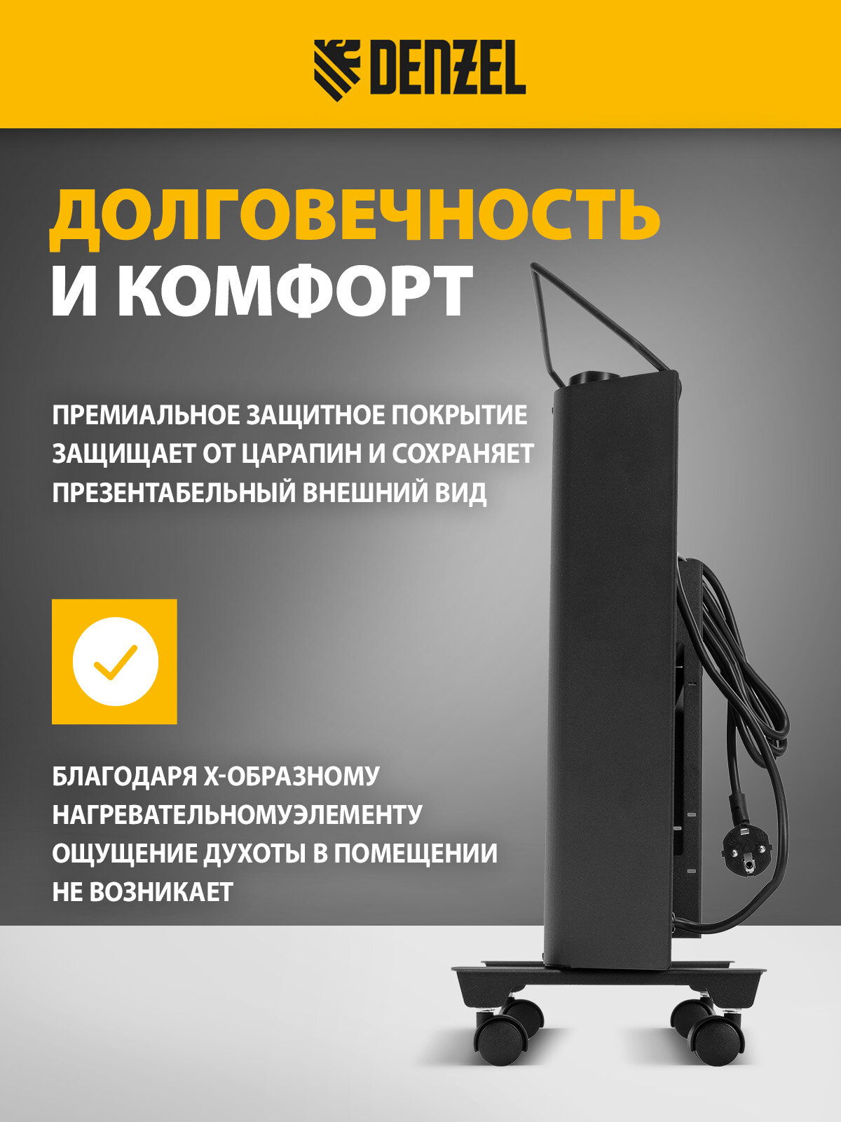 Конвектор Denzel XCE-1500B разработан с использованием передовых технологий для обеспечения максимальной эффективности обогрева. Его X-образный нагревательный элемент гарантирует быстрый и равномерный прогрев воздуха, а продуманная конструкция способствует естественной циркуляции тепла в помещении.