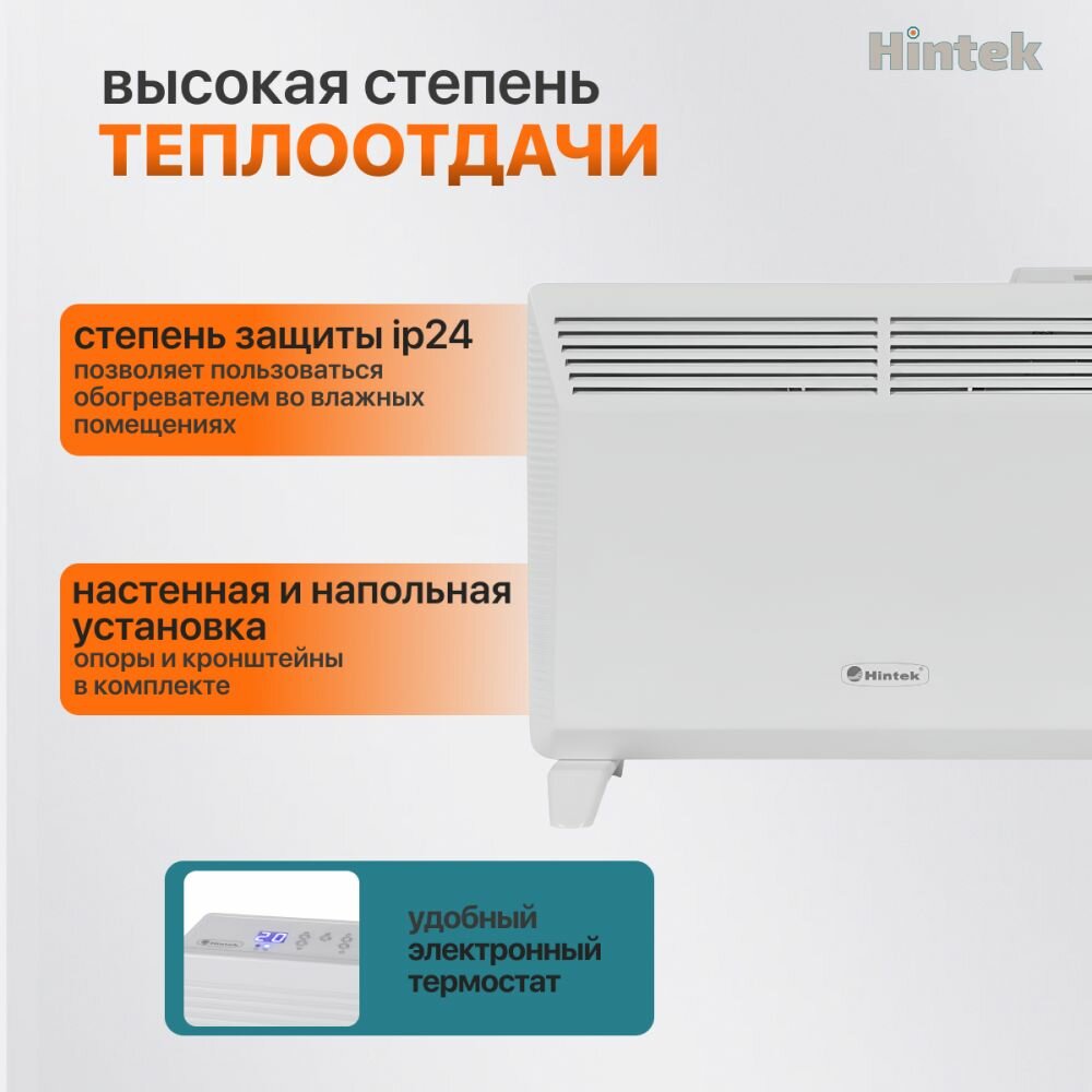 Забудьте о неудобствах, связанных с традиционными обогревателями. Hintek RA-1000E – это современное решение для тех, кто ценит комфорт, экономию и безопасность. Подарите себе тепло и уют с этим превосходным электрическим конвектором!