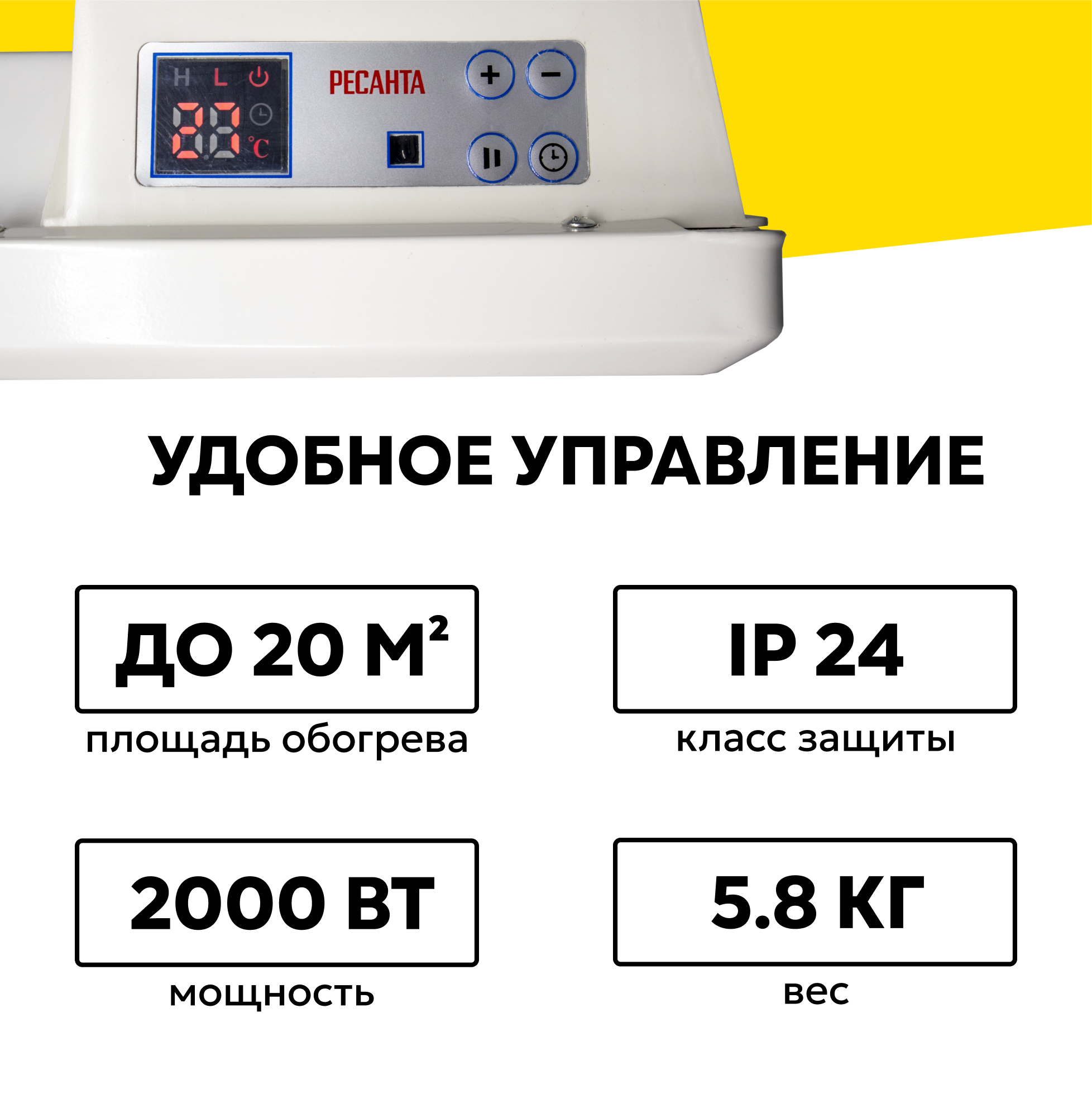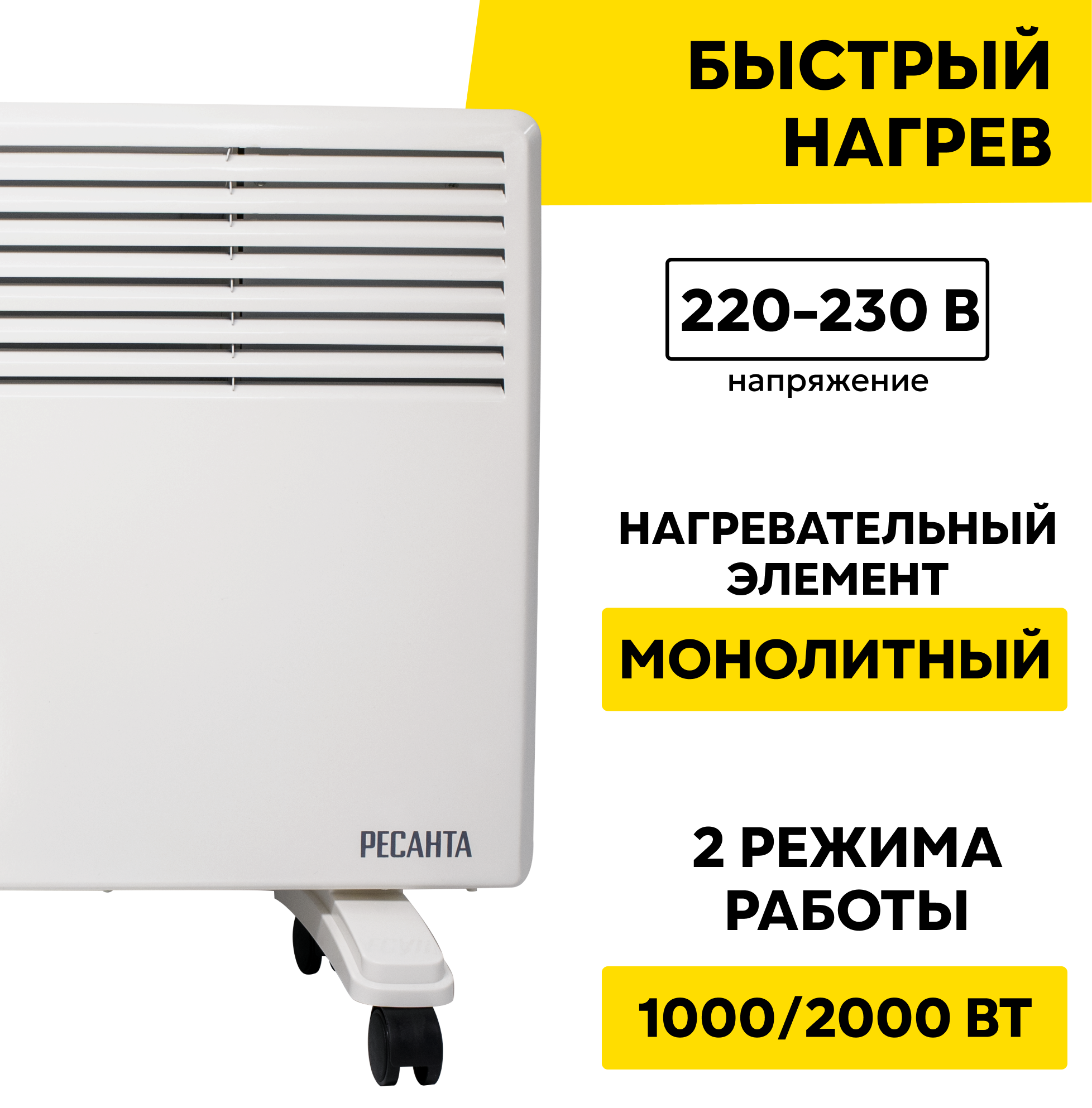 Этот конвектор – отличный выбор для тех, кто ценит комфорт, надежность и экономичность. Наслаждайтесь теплом в холодное время года с электрическим конвектором РЕСАНТА ОК-2000Е!