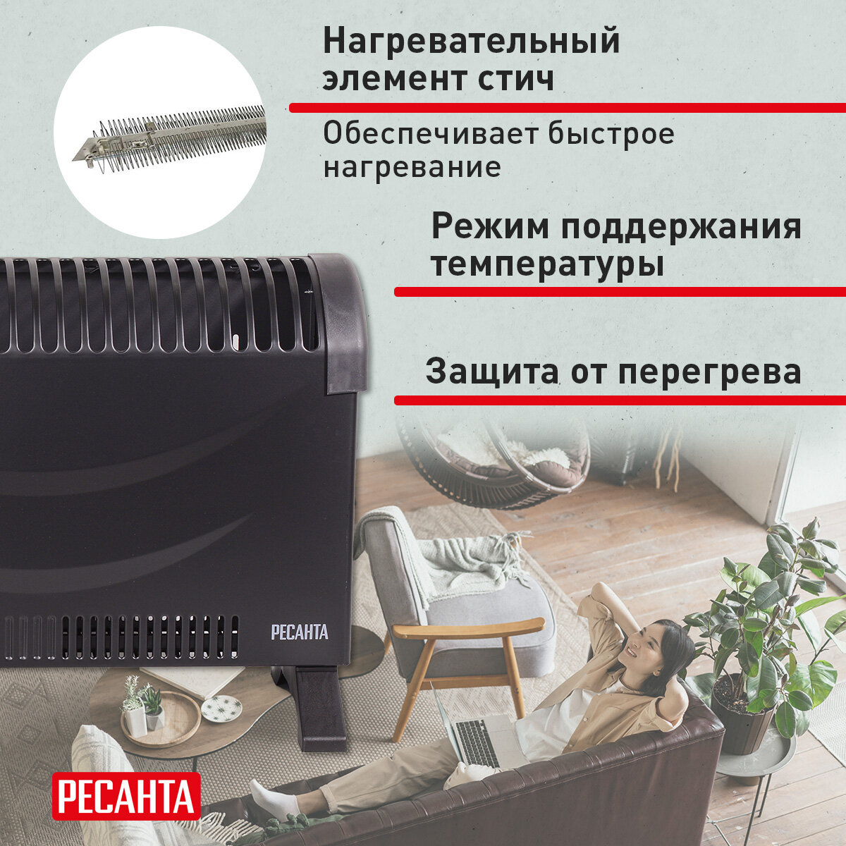 Благодаря своей конструкции, конвектор Ресанта эффективно распределяет тепло, создавая уютную атмосферу даже в самые холодные дни. Он идеально подходит для использования в качестве основного или дополнительного источника отопления, позволяя вам регулировать температуру в соответствии с вашими потребностями.