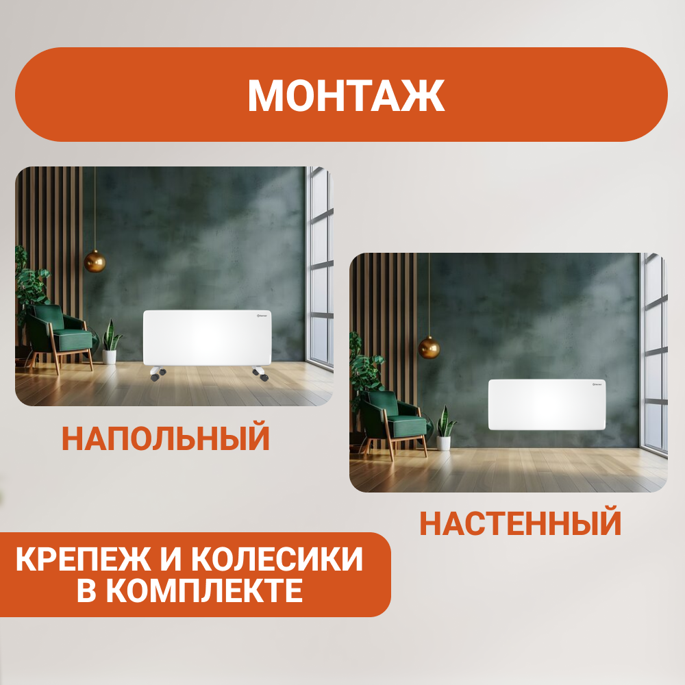Простота установки и управления делает этот конвектор отличным выбором для пользователей любого уровня подготовки. Интуитивно понятная панель управления позволяет легко регулировать температуру и выбирать оптимальный режим работы в соответствии с вашими потребностями.