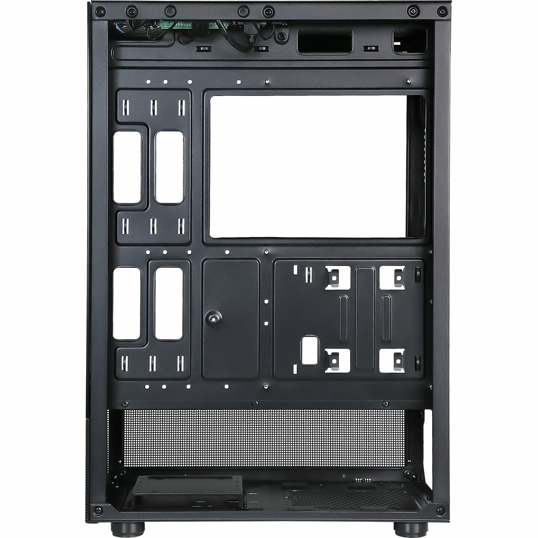 Внутреннее пространство корпуса организовано таким образом, чтобы обеспечить оптимальный воздушный поток и эффективное охлаждение компонентов. Это особенно важно для поддержания стабильной работы системы при высоких нагрузках, что позволит вам наслаждаться плавной и бесперебойной работой вашего компьютера во время игр, работы с ресурсоемкими приложениями или просмотра видео в высоком разрешении.
