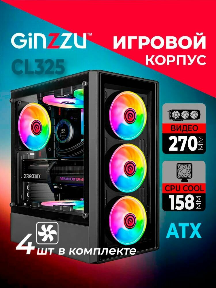 Создайте свой уникальный игровой или рабочий компьютер с корпусом Ginzzu CL325 ATX. Почувствуйте уверенность в надежности и эффективности вашей сборки, а также наслаждайтесь эстетикой современного дизайна и красотой FRGB подсветки!