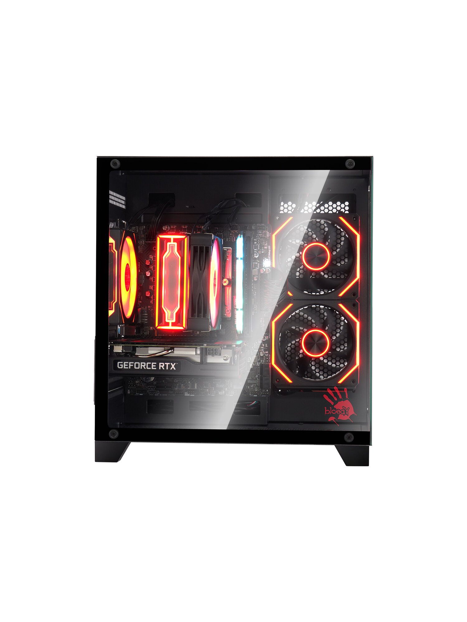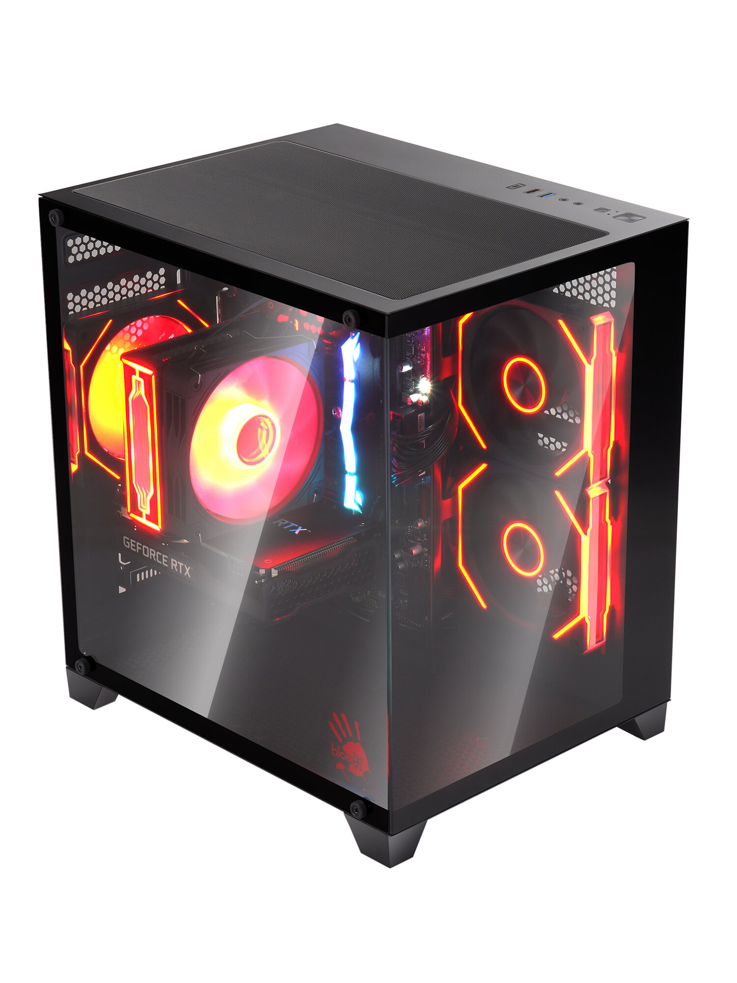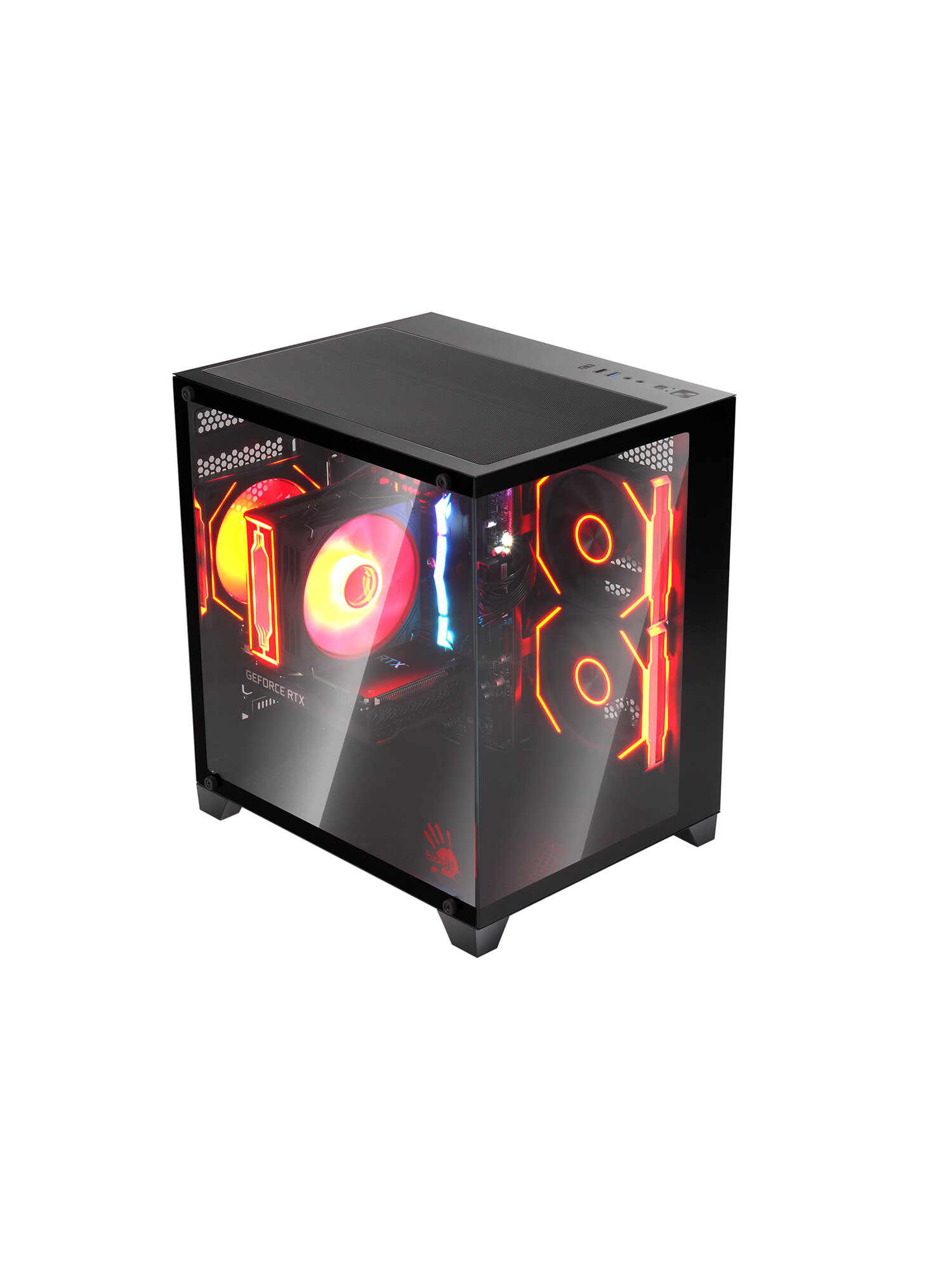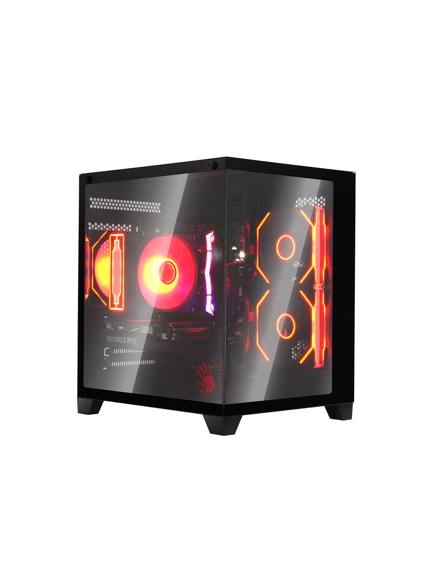 Bloody BD-CC105 выделяется своим современным и лаконичным дизайном. Черный цвет корпуса придает ему элегантный и сдержанный вид, который гармонично впишется в любой интерьер. Передняя панель корпуса имеет продуманную структуру, обеспечивающую хороший приток воздуха для оптимального охлаждения внутренних компонентов. Это особенно важно для поддержания стабильной работы системы при высоких нагрузках, например, во время игр или рендеринга видео.