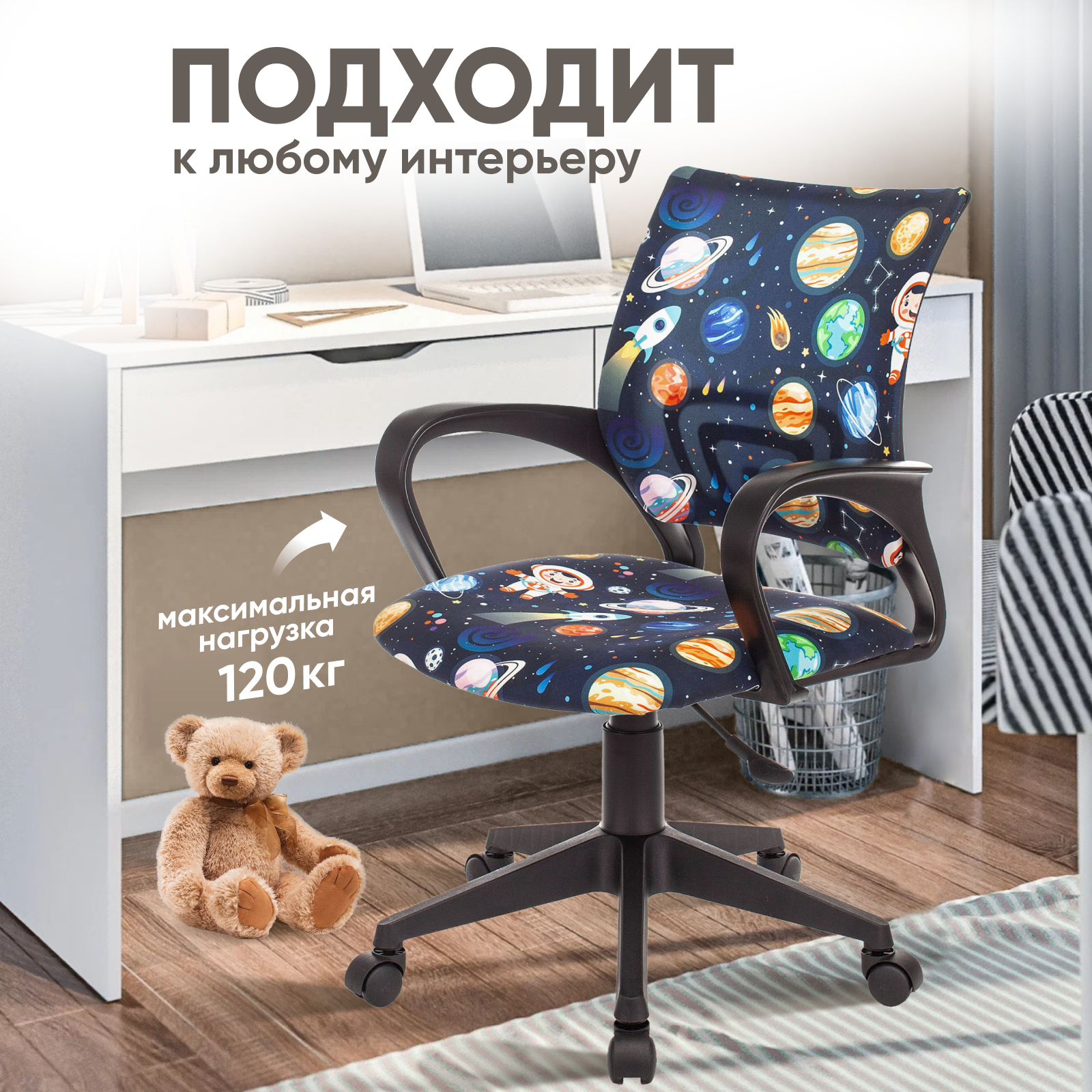 Яркий и привлекательный дизайн "Космос" обязательно понравится вашему ребенку, превращая процесс учебы в увлекательное занятие. Прочные и надежные материалы гарантируют долговечность кресла, а удобные колесики обеспечивают легкое перемещение по комнате.