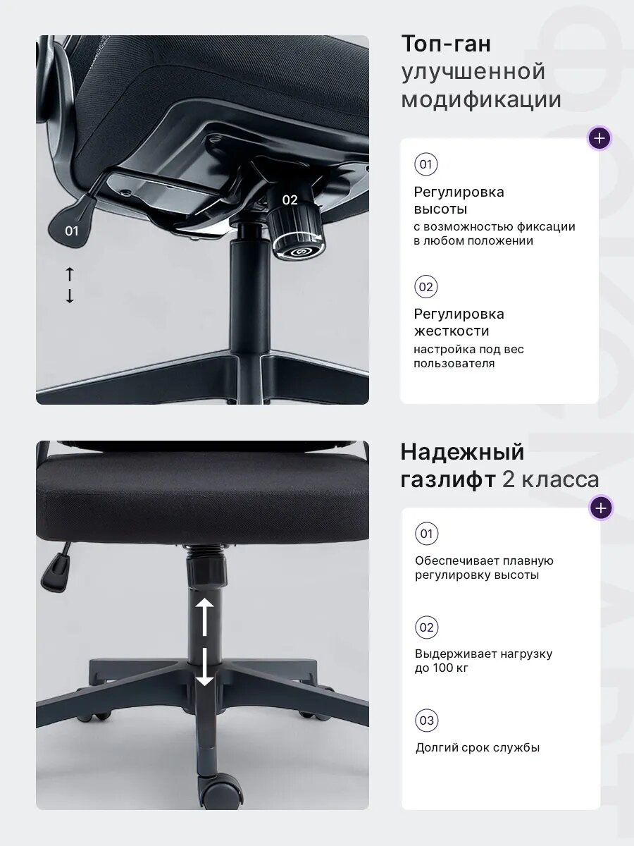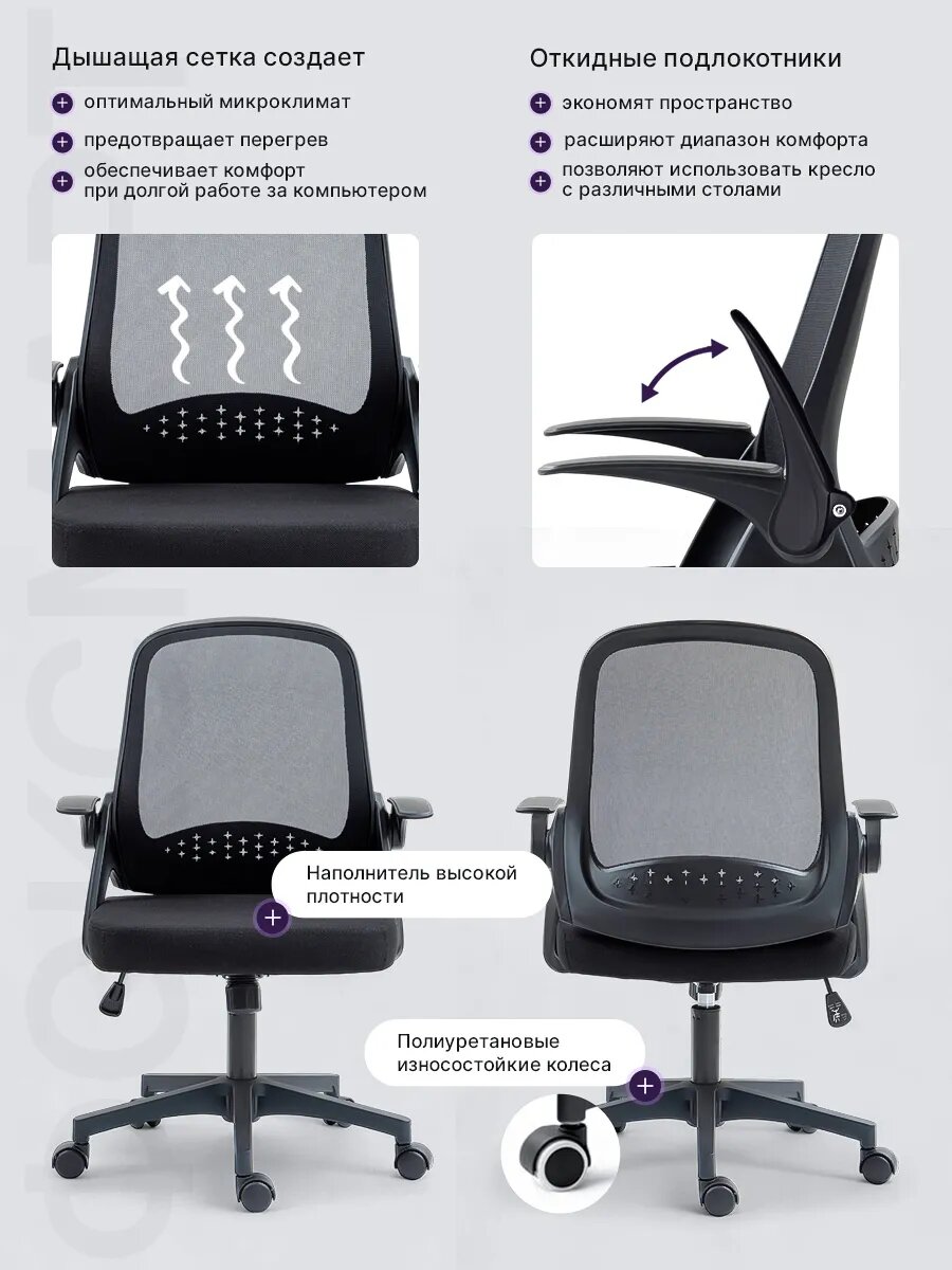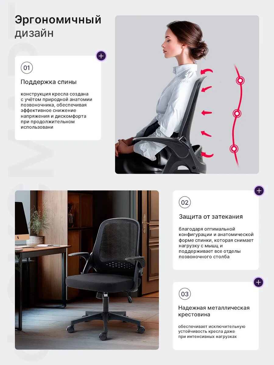 Это кресло разработано с учетом потребностей современного пользователя, проводящего много времени за компьютером. Эргономичный дизайн способствует правильной осанке, снижает нагрузку на спину и шею, и помогает избежать усталости даже после многочасовой работы.