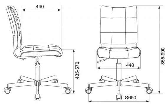 Надежная конструкция гарантирует долговечность кресла. Прочная металлическая крестовина обеспечивает устойчивость и позволяет креслу выдерживать значительные нагрузки. Отсутствие подлокотников делает кресло более компактным и удобным для использования в ограниченном пространстве, а также позволяет удобно подкатить его к столу.