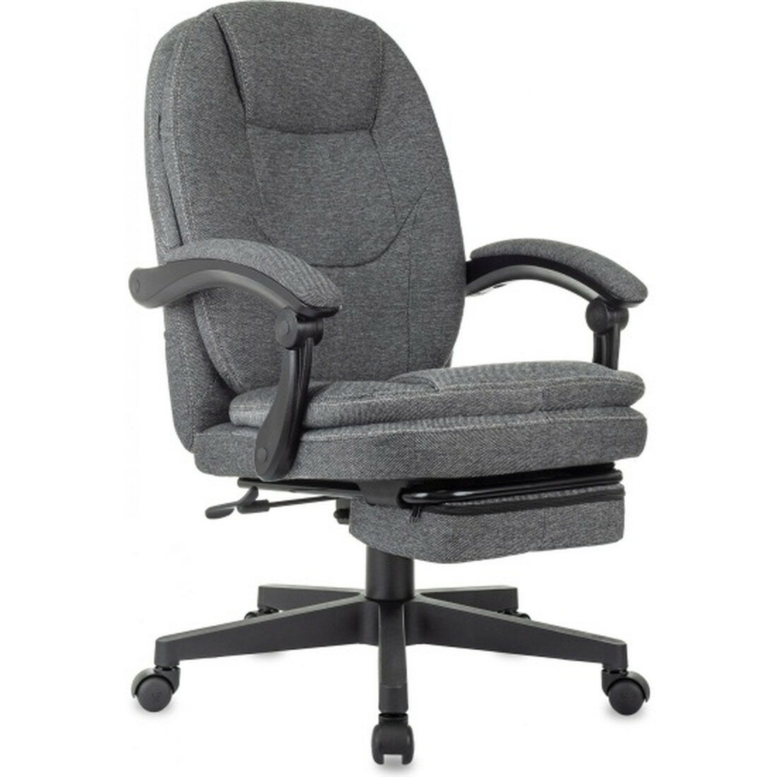 Серый цвет обивки придает креслу современный и стильный вид, который гармонично впишется в любой офисный интерьер. Крестовина из прочного пластика обеспечивает устойчивость и надежность конструкции.