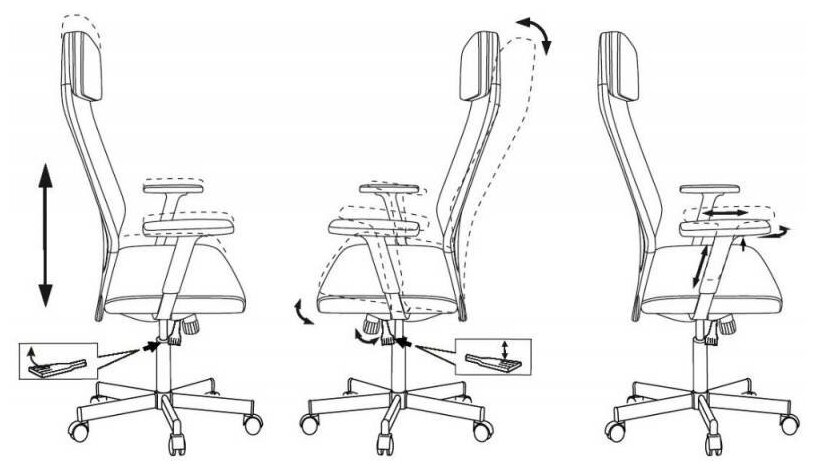 Механизмы регулировки позволяют настроить кресло под индивидуальные потребности каждого пользователя. Вы сможете легко отрегулировать высоту сиденья, наклон спинки и подлокотники, обеспечивая максимальный комфорт и поддержку.