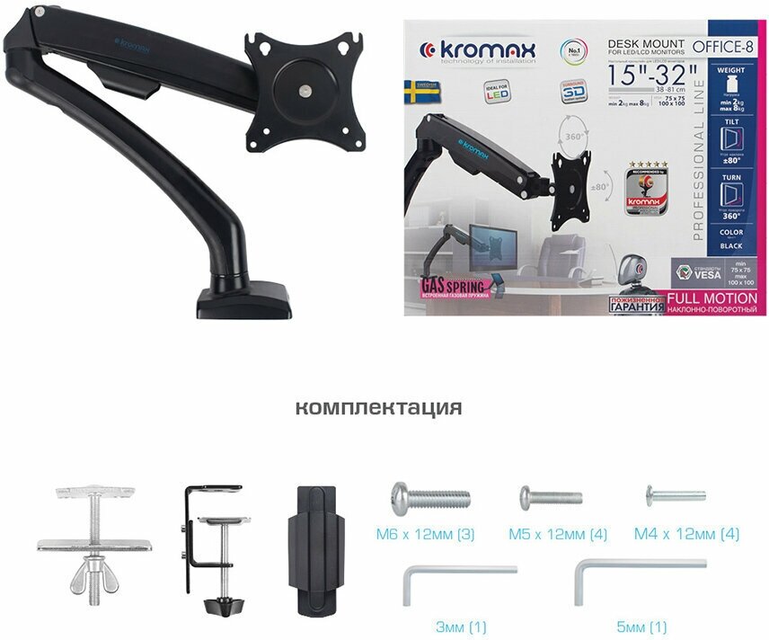 Оптимизируйте свое рабочее пространство с помощью надежного и функционального настольного кронштейна для монитора KROMAX OFFICE-8. Это идеальное решение для тех, кто стремится к эргономике и комфорту в процессе работы или учебы.