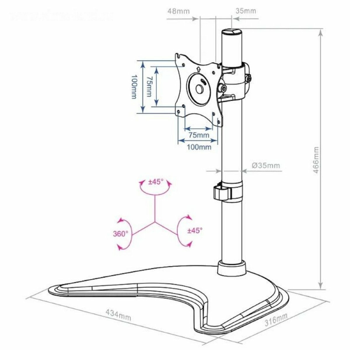 Кронштейн обеспечивает гибкую настройку положения монитора, позволяя вам с легкостью регулировать высоту, наклон и поворот экрана. Это поможет создать комфортные условия для работы или развлечений, снижая нагрузку на шею и глаза.