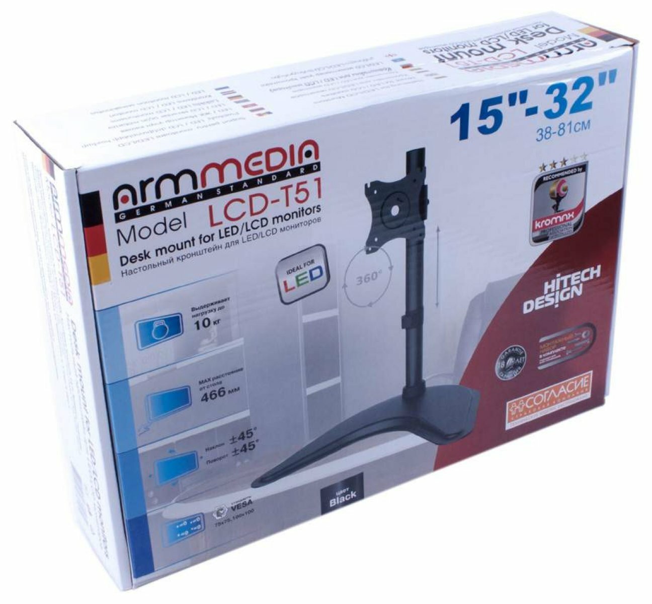 Оптимизируйте свое рабочее пространство с помощью надежного и функционального настольного кронштейна для монитора Arm Media LCD-T51. Это идеальное решение для тех, кто ценит эргономику и порядок на столе.
