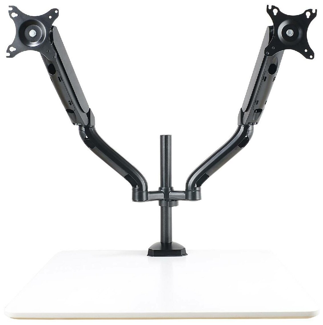 Прочная конструкция кронштейна гарантирует надежную фиксацию монитора, а стильный черный цвет идеально впишется в любой интерьер. Крепление к столешнице обеспечивает устойчивость и безопасность, а также позволяет легко установить и настроить кронштейн.