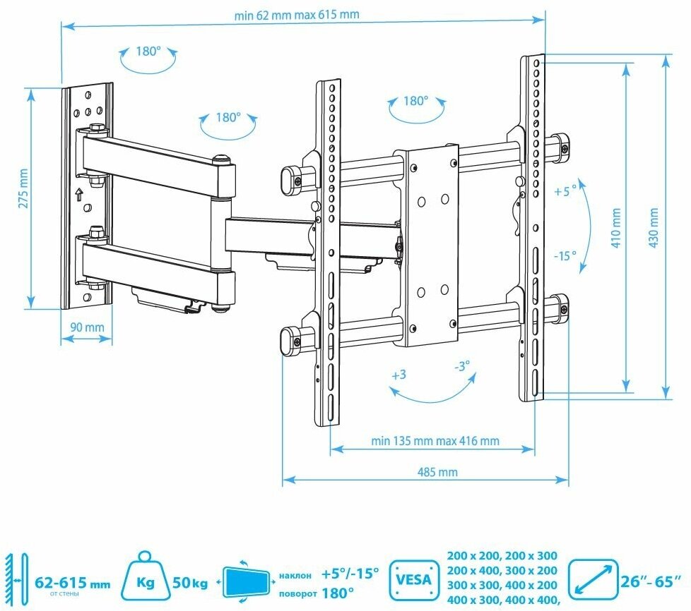Кронштейн ARM MEDIA Paramount 40 выполнен из высококачественных материалов, обеспечивающих его долговечность и безопасность. Он способен выдерживать значительный вес телевизора, гарантируя его надежную фиксацию на стене. Простая и понятная инструкция по установке позволит вам быстро и легко закрепить кронштейн, не прибегая к помощи специалистов.