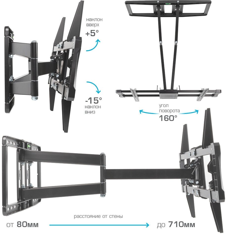 Этот кронштейн позволяет регулировать угол наклона и поворота телевизора, обеспечивая максимально комфортный просмотр из любой точки комнаты. Вы сможете легко настроить положение экрана, чтобы избежать бликов и добиться оптимального угла обзора для наилучшего качества изображения.