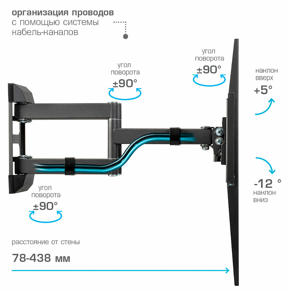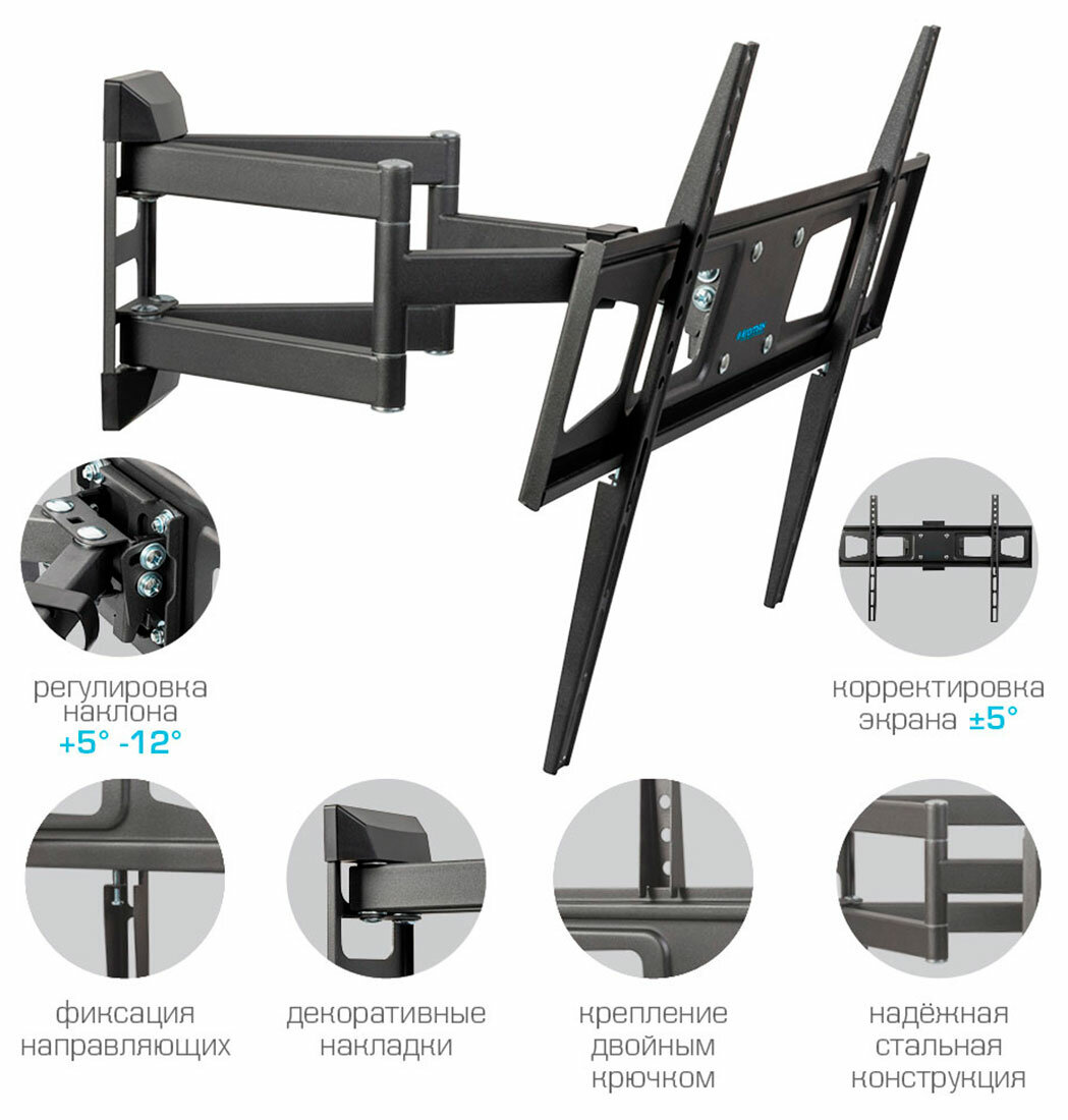 Этот кронштейн разработан с учетом потребностей пользователей, ценящих функциональность и эстетику. Он обеспечивает надежное крепление вашего телевизора, освобождая место на тумбе или комоде. Вы сможете наслаждаться просмотром любимых фильмов и передач, расположив экран на оптимальной высоте и под удобным углом.
