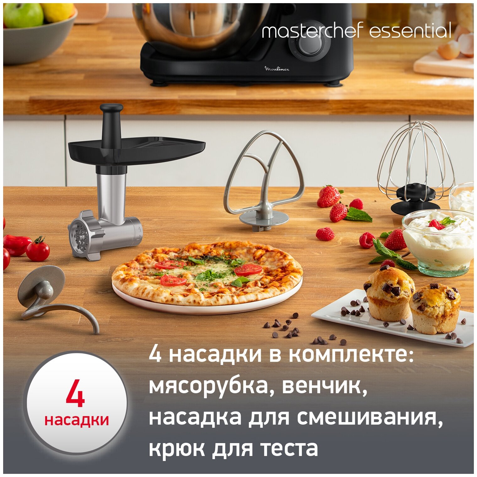 Ищете надежного и универсального помощника на кухне? Кухонная машина Moulinex QA151810 в стильном черно-серебристом исполнении – это именно то, что вам нужно! Этот многофункциональный прибор станет вашим незаменимым партнером в приготовлении широкого спектра блюд, от пышных пирогов до нежного домашнего теста.