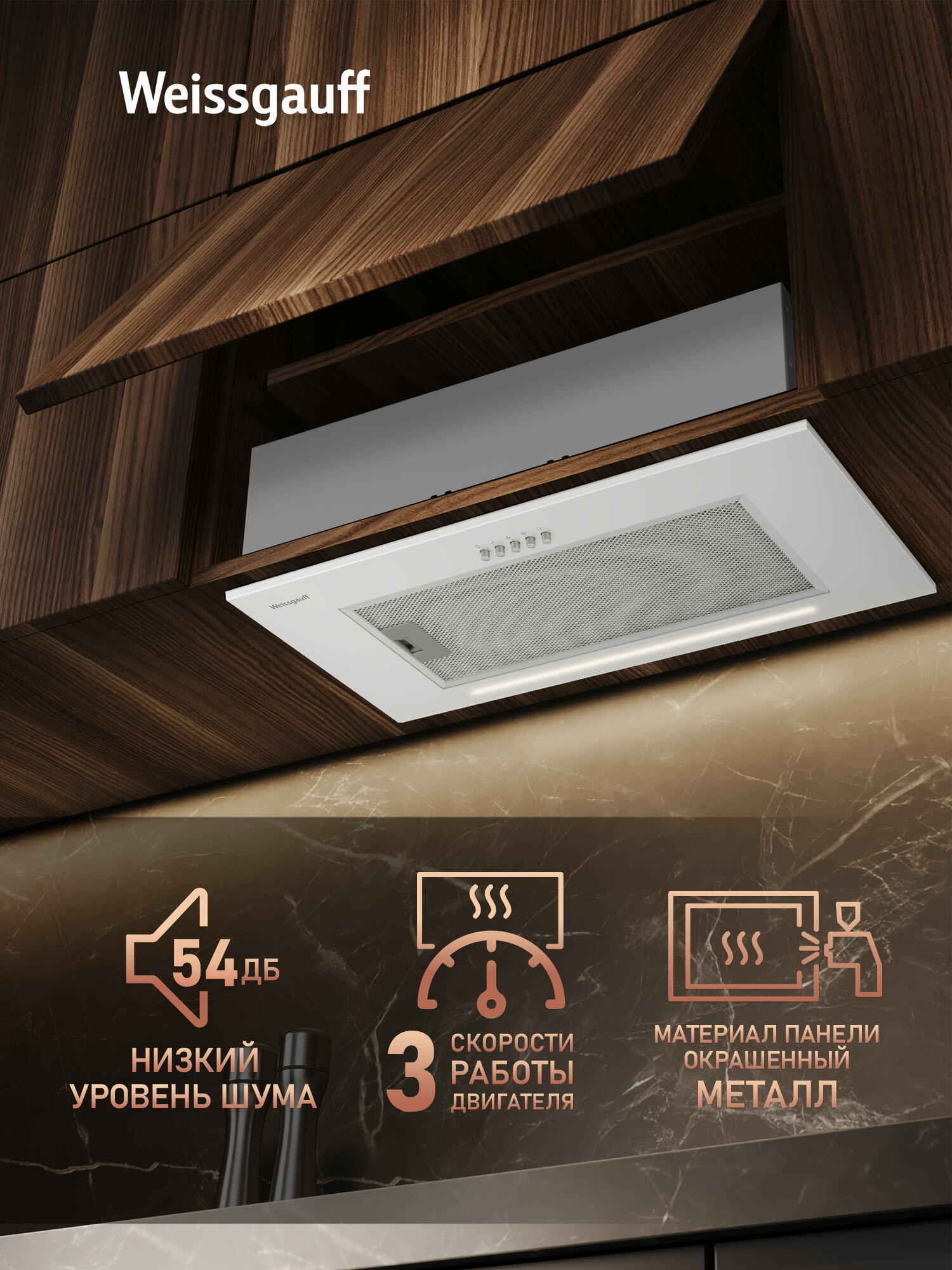 Ищете идеальную вытяжку для вашей кухни? Обратите внимание на кухонную встраиваемую вытяжку Weissgauff Integra 850 PB WH! Это современное решение, которое сочетает в себе элегантный дизайн и высокую производительность, обеспечивая чистый и свежий воздух в вашем доме.